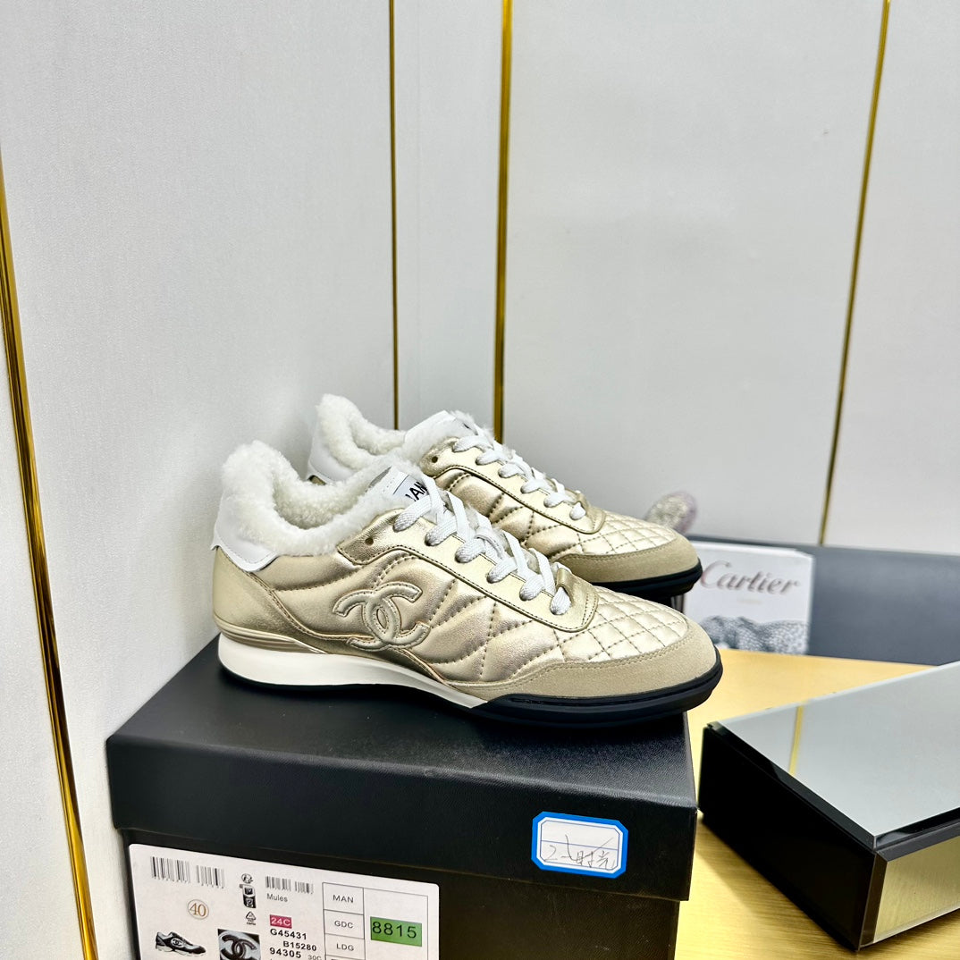 CC Low Sneaker Gold Metalic Wool Cowhide 413859