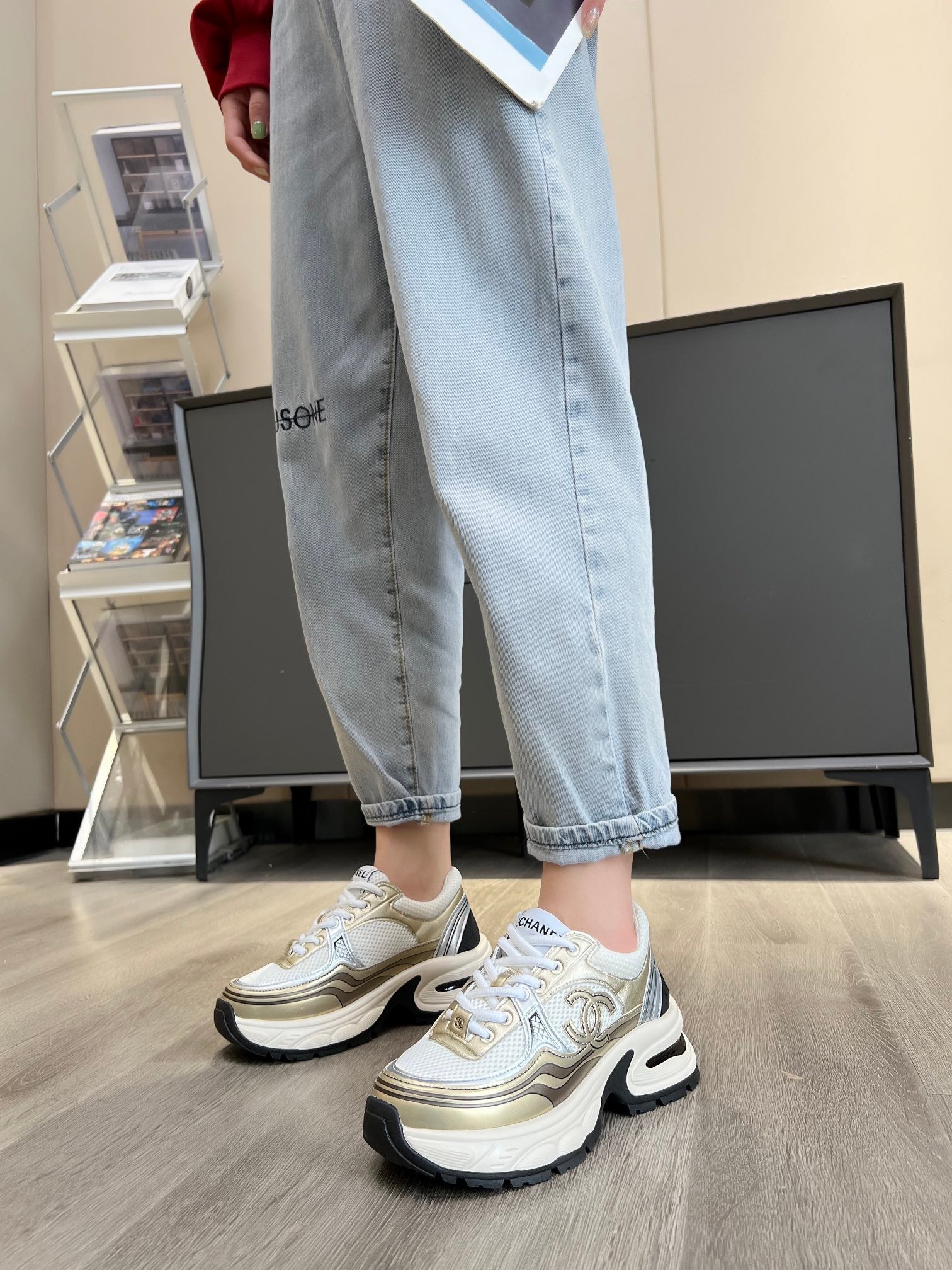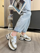 cc trainer black gold calfskin white mesh
