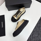 CC25 Lace-up Sneakers Gold Metallic Cowhide And Black Patent Leather 352500