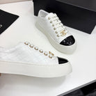 CC25 Lace-up Sneakers White Cowhide And Black Patent Leather 352499