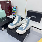 Chanel 2025 High-Top Sneakers Light Blue White Cowhide Denim Frabic 469797