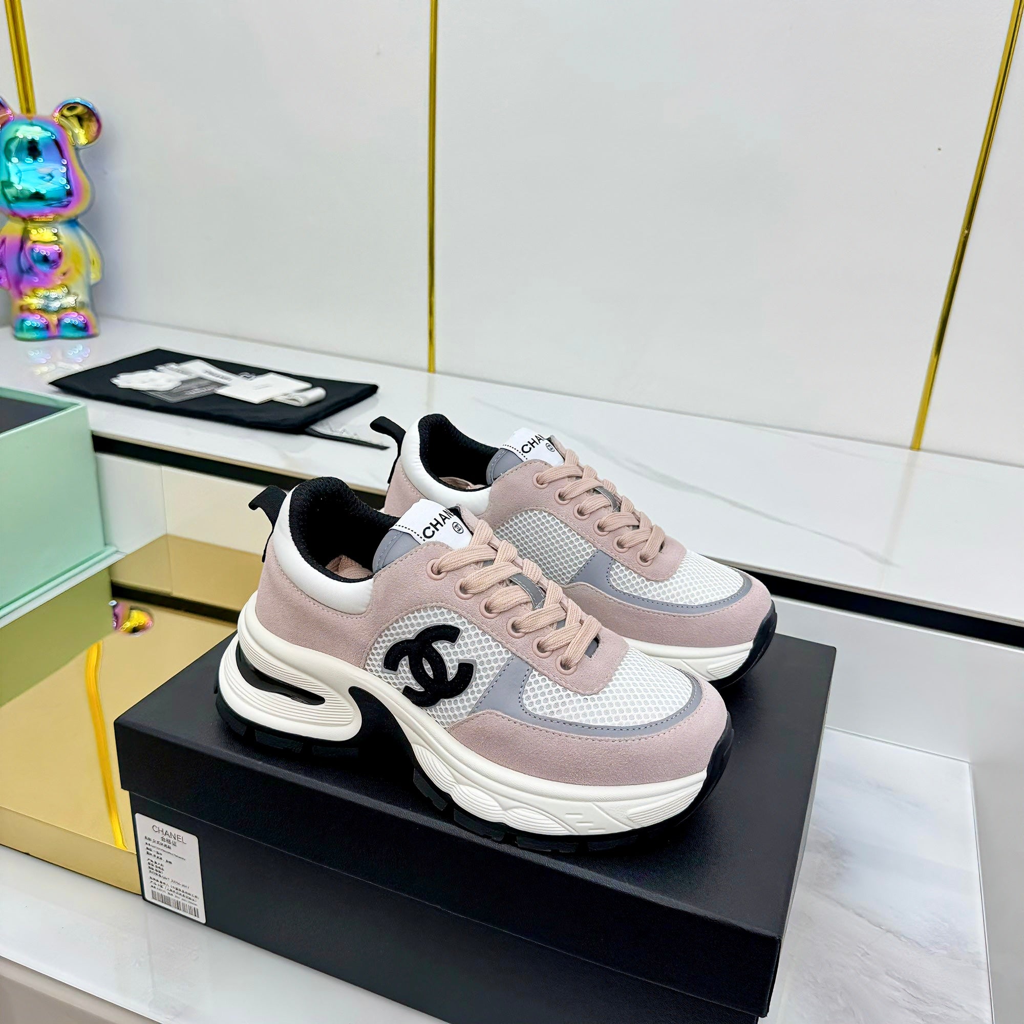 Chanel 25A Sports Shoes White Black Mix Pink Sheepskin 393113