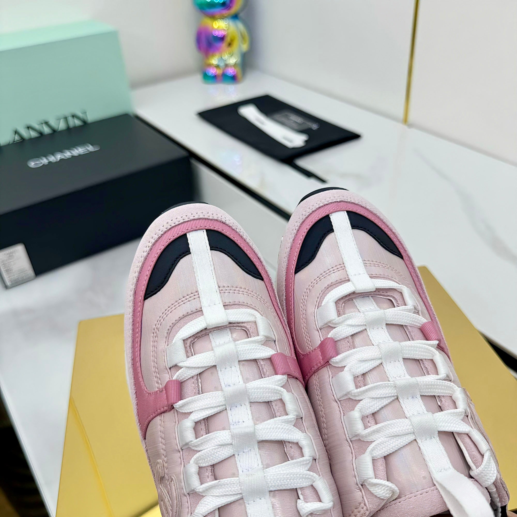 cc sneaker pink tweed dark cream calfskin suede calfskin