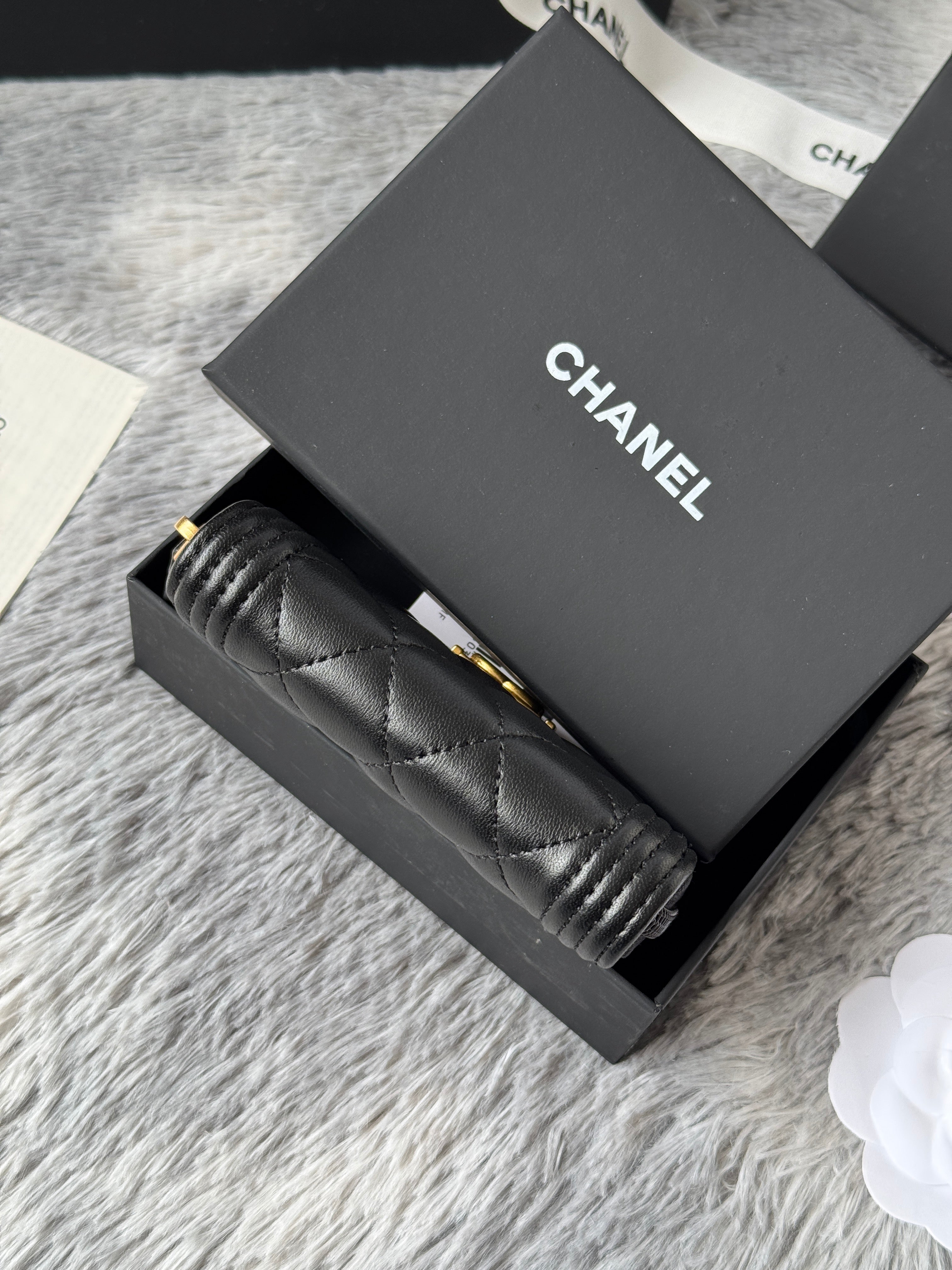 CC Classic Boy Coin Purse Black Gold-tone Lambskin 242886