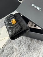 CC Boy Flap Card Holder Black Gold-tone Grained Calfskin 242866