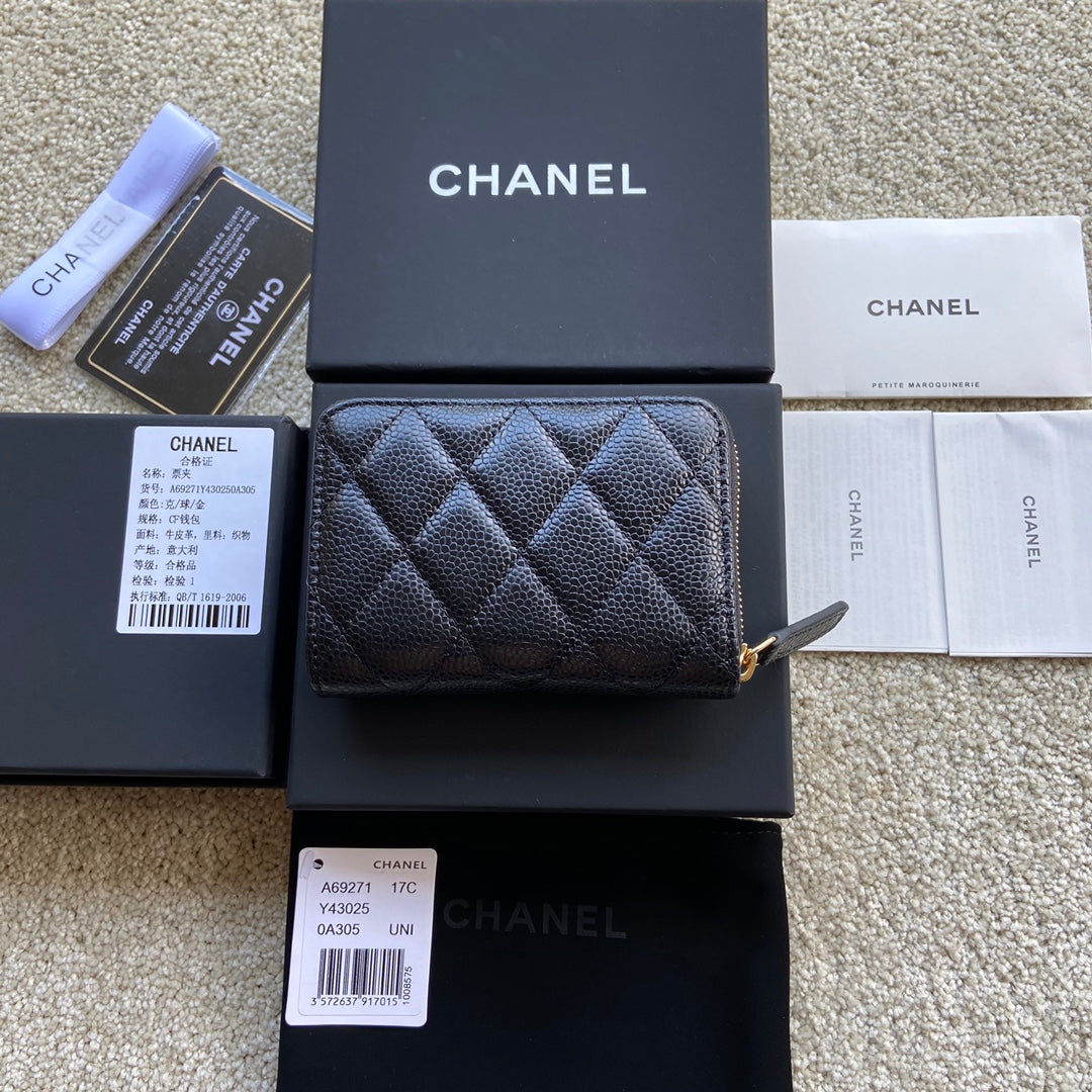 CC Classic Zipper Card Holder Black Caviar GHW 156535