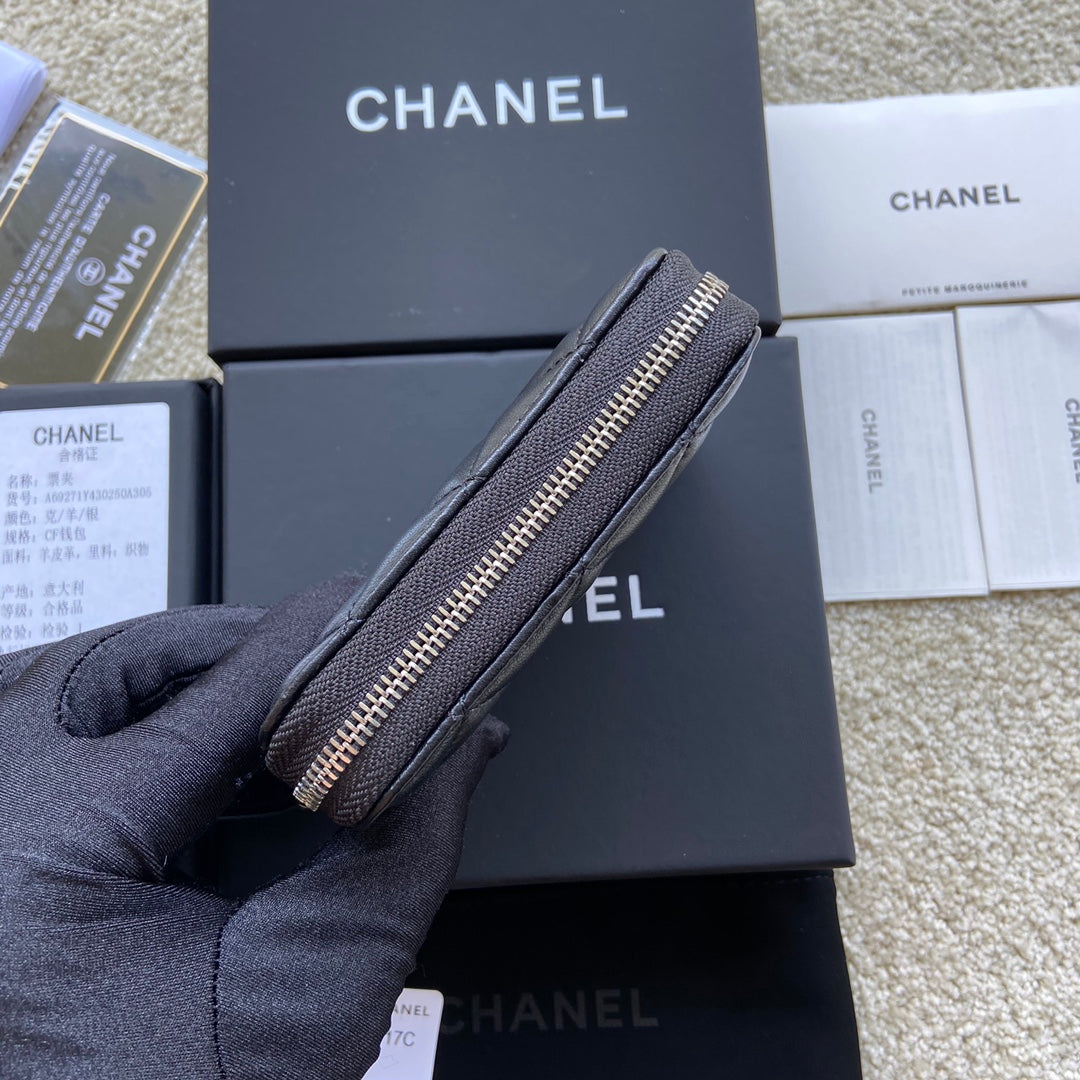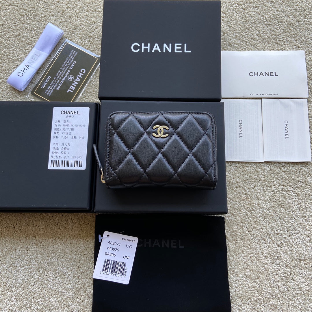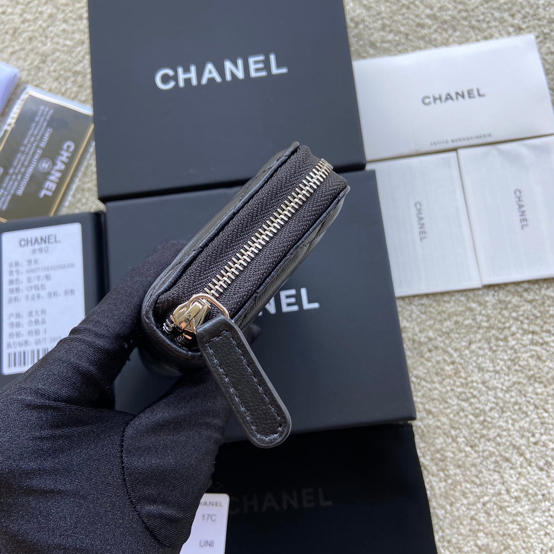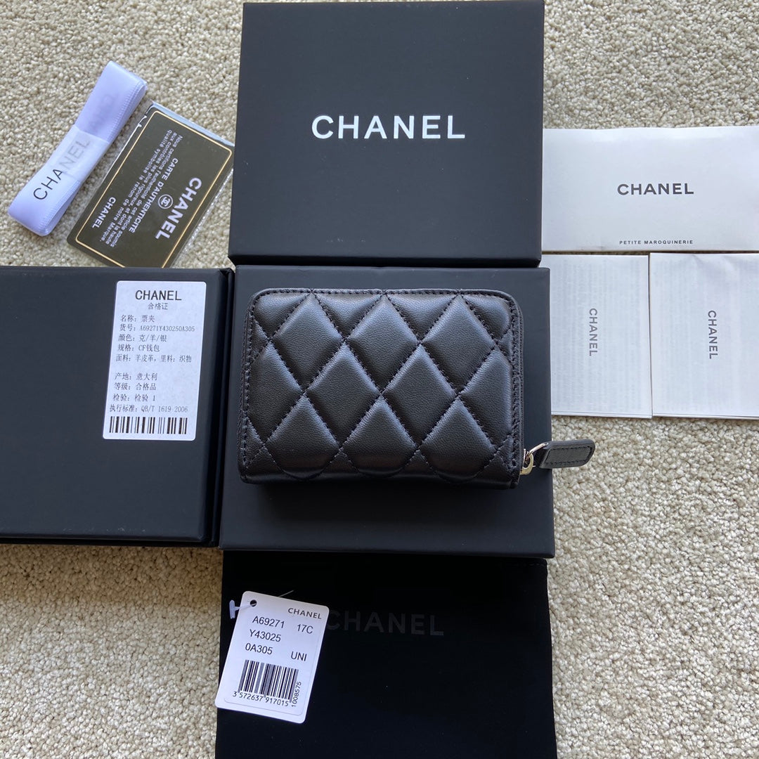CC Classic Zipper Card Holder Black Sheepskin Silver Steel 229632