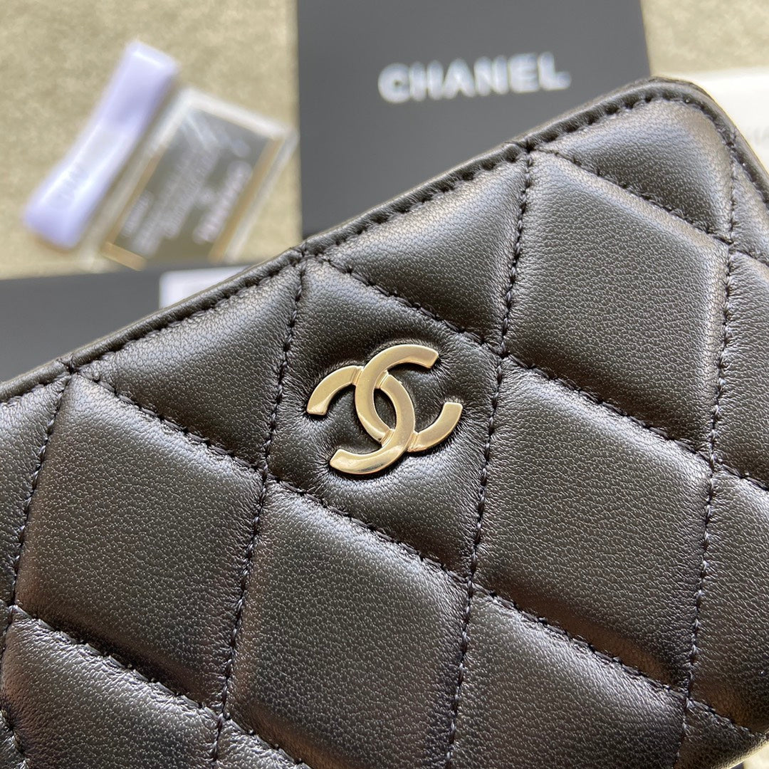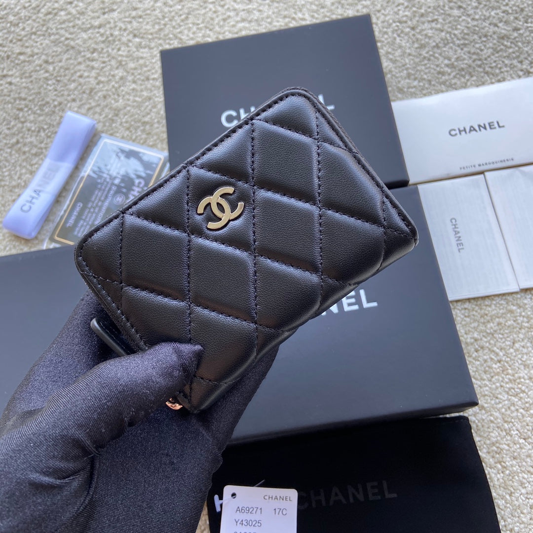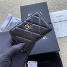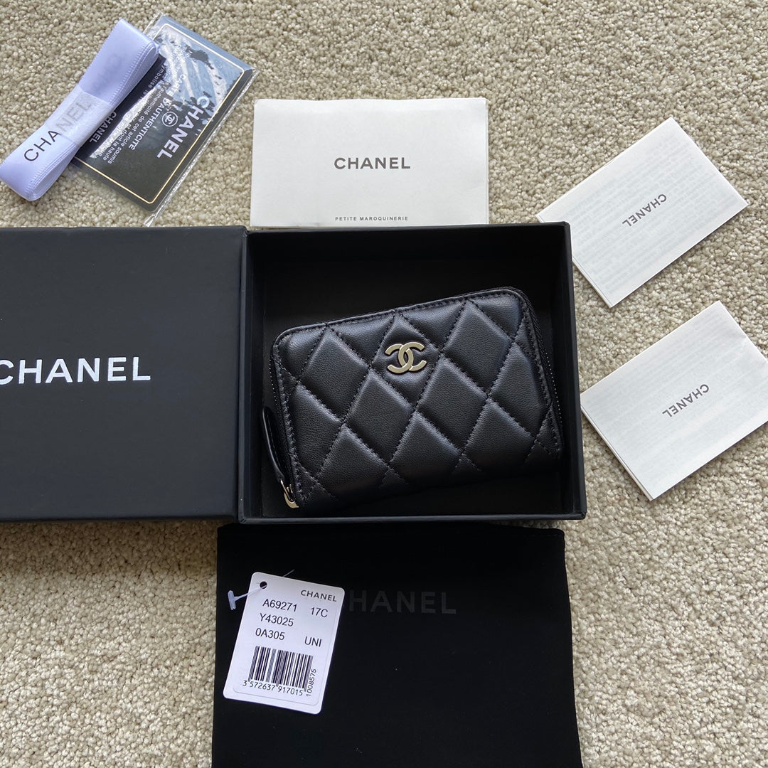 CC Classic Zipper Card Holder Black Sheepskin Silver Steel 229632