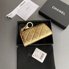 CC Hook & Chain Zipper Card Holder Gold Sheepskin GHW 234721