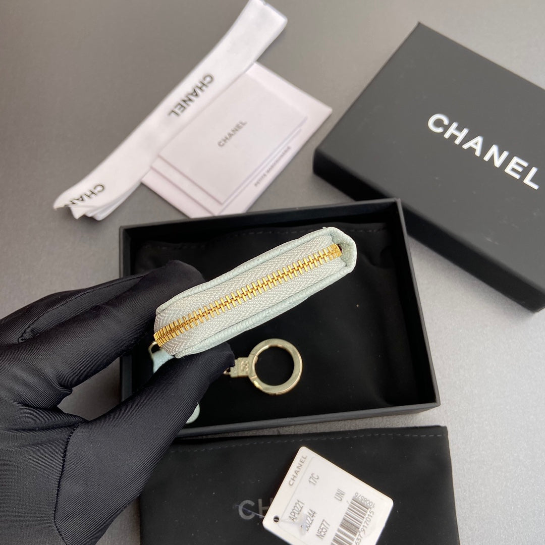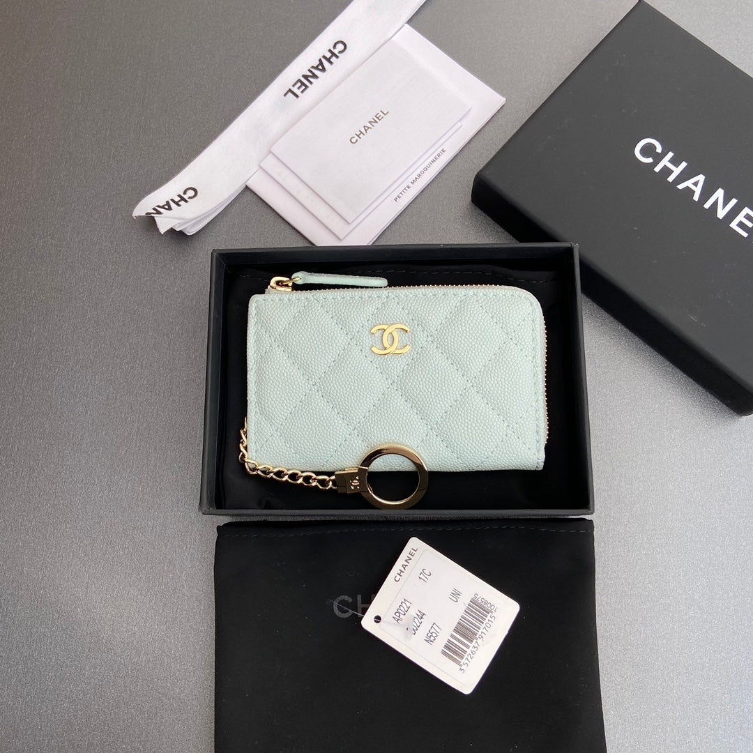 CC Hook & Chain Zipper Card Holder Light Blue Caviar GHW 234723