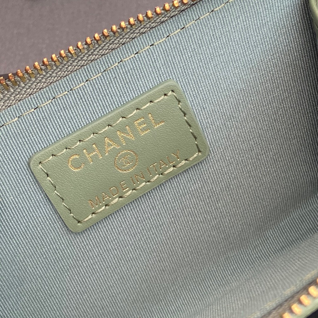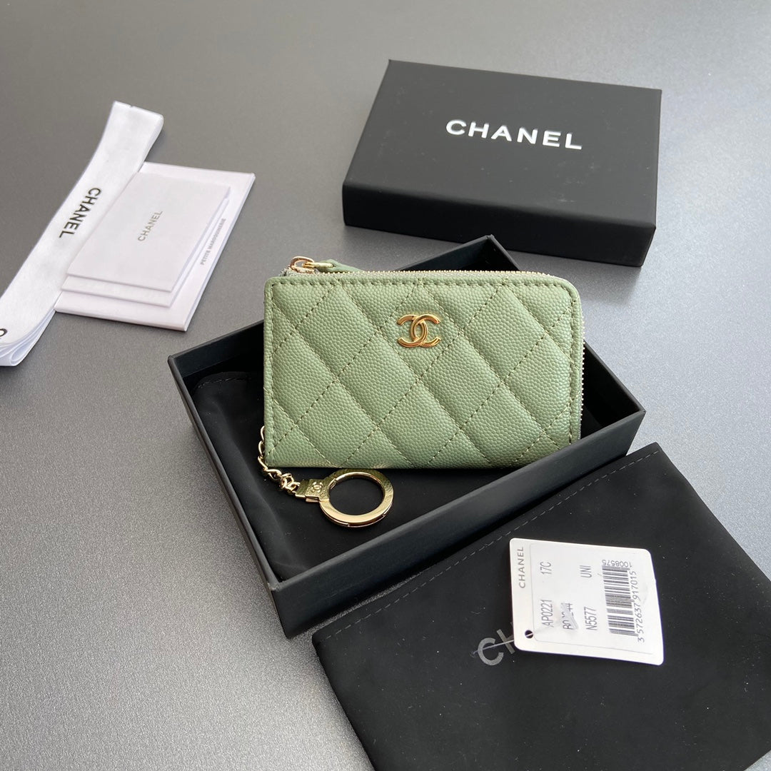 CC Hook & Chain Zipper Card Holder Light Green Caviar GHW 234727