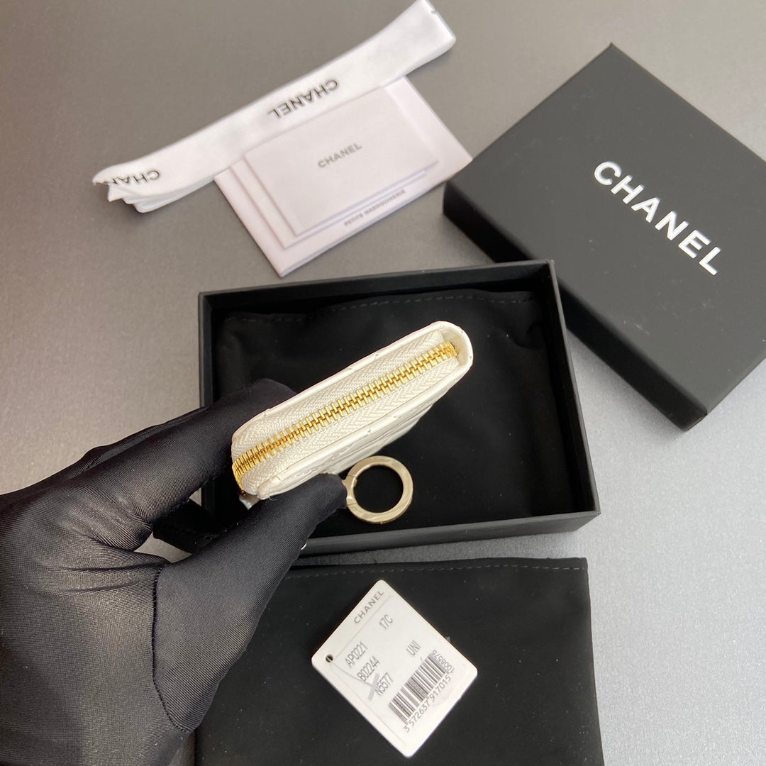 CC Hook & Chain Zipper Card Holder White Patent GHW 234739