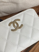 cc zipped wallet 11cm white caviar gold hardware