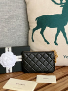 cc zipped wallet 14cm black lambskin gold hardware