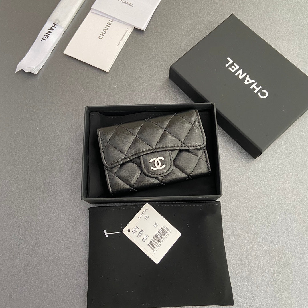 CC Zipper Flap Card Holder Black Sheepskin Sliver Steel 234675