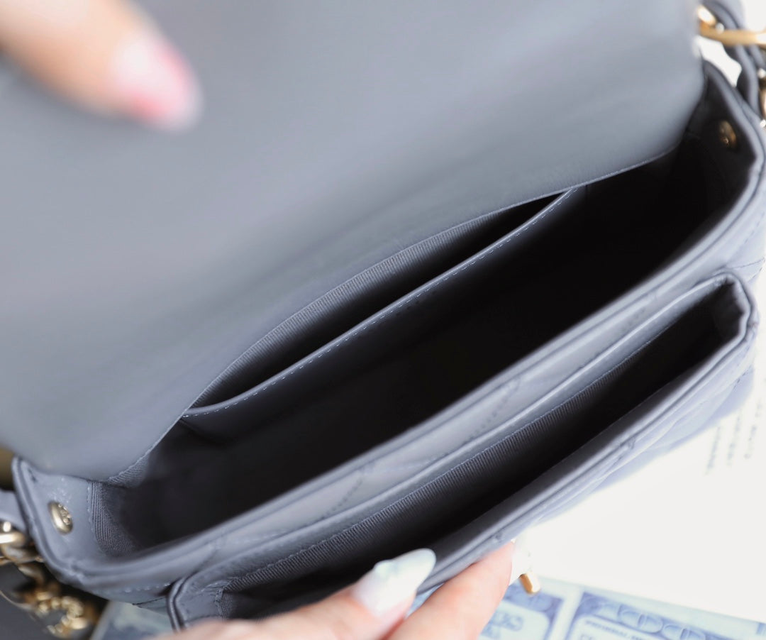 cc 24a flap bag 20cm top handle grey lambskin gold hardware