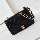CC 24B Mini Flap Bag 20cm Black Lambskin Gold Hardware