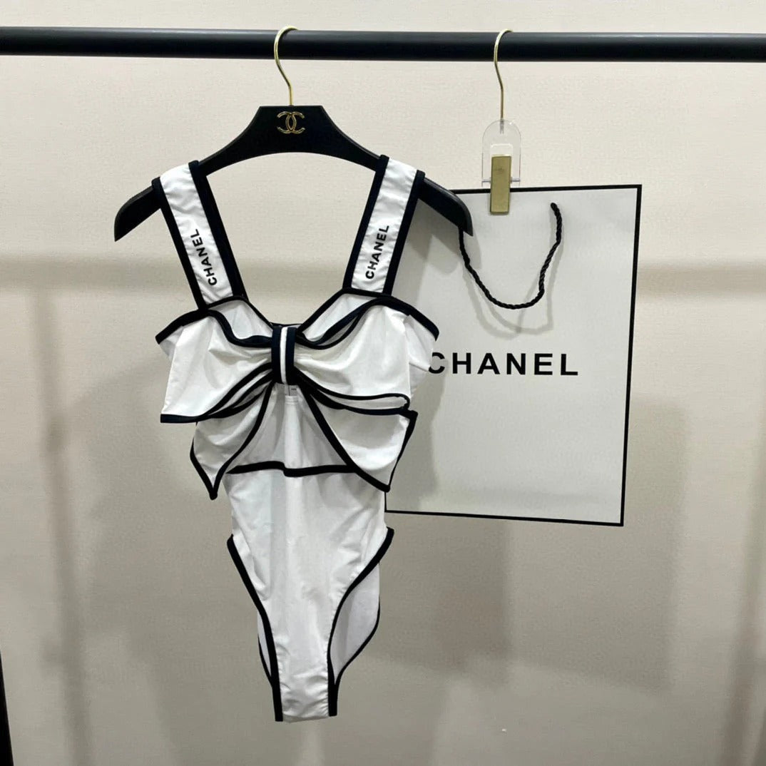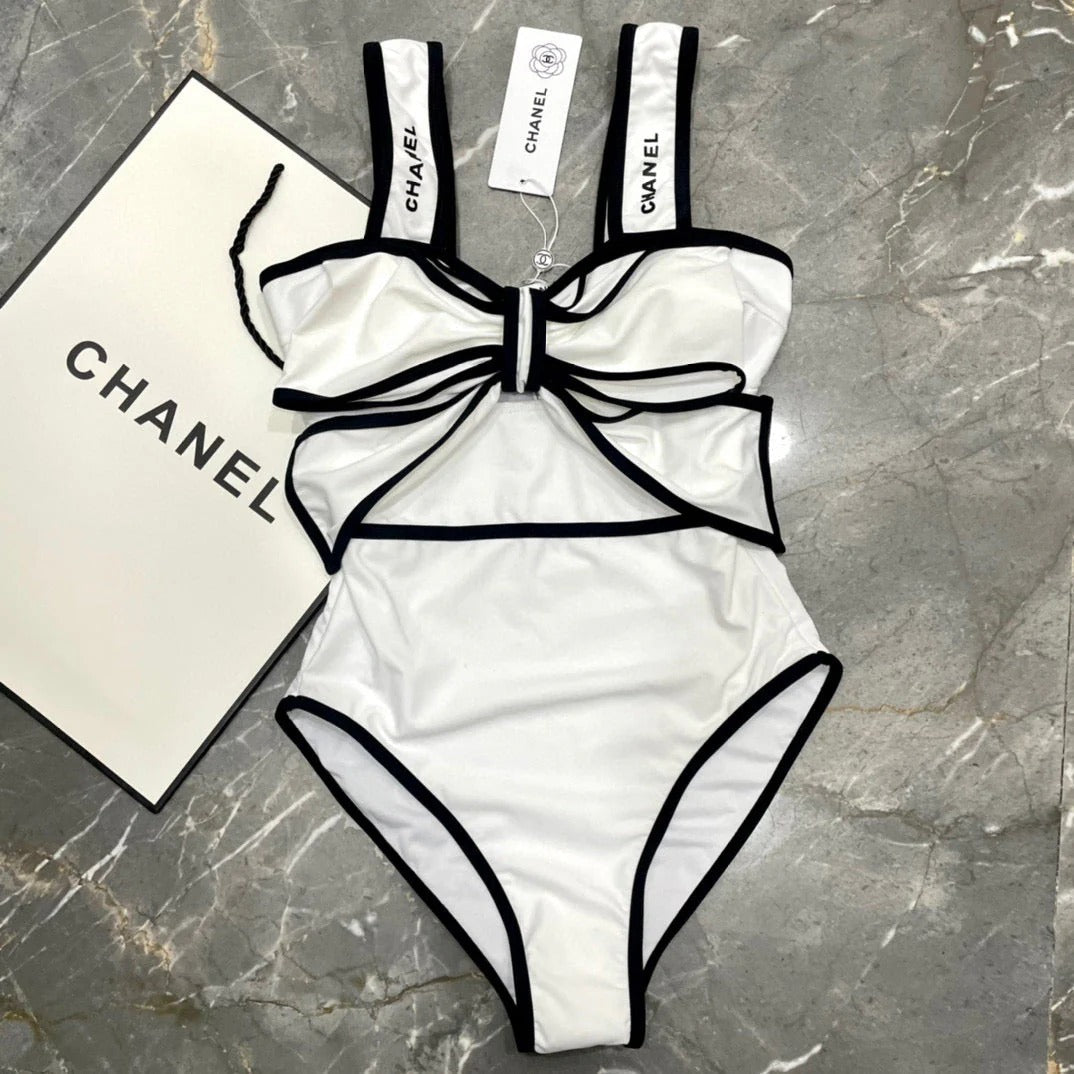 BODYSUIT SWIMSUIT IN WHITE AND BLACK TRIM 627828