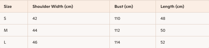 - For more information, please see the size guide below