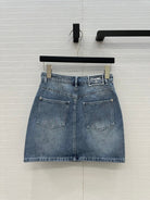 CC 25 Embroidered Short Skirt Blue Denim Cotton