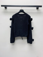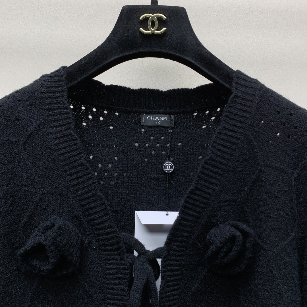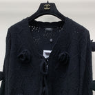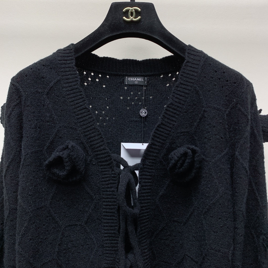 CC 25 Knitted Three-Dimensional Flower Tie Cardigan in Black 277589