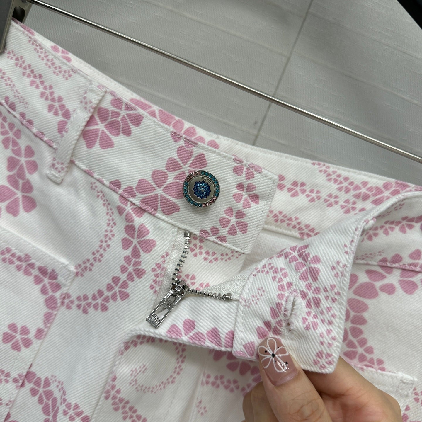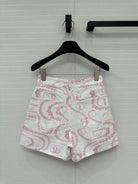 CC 25 Printed Denim Short Pink White Cotton