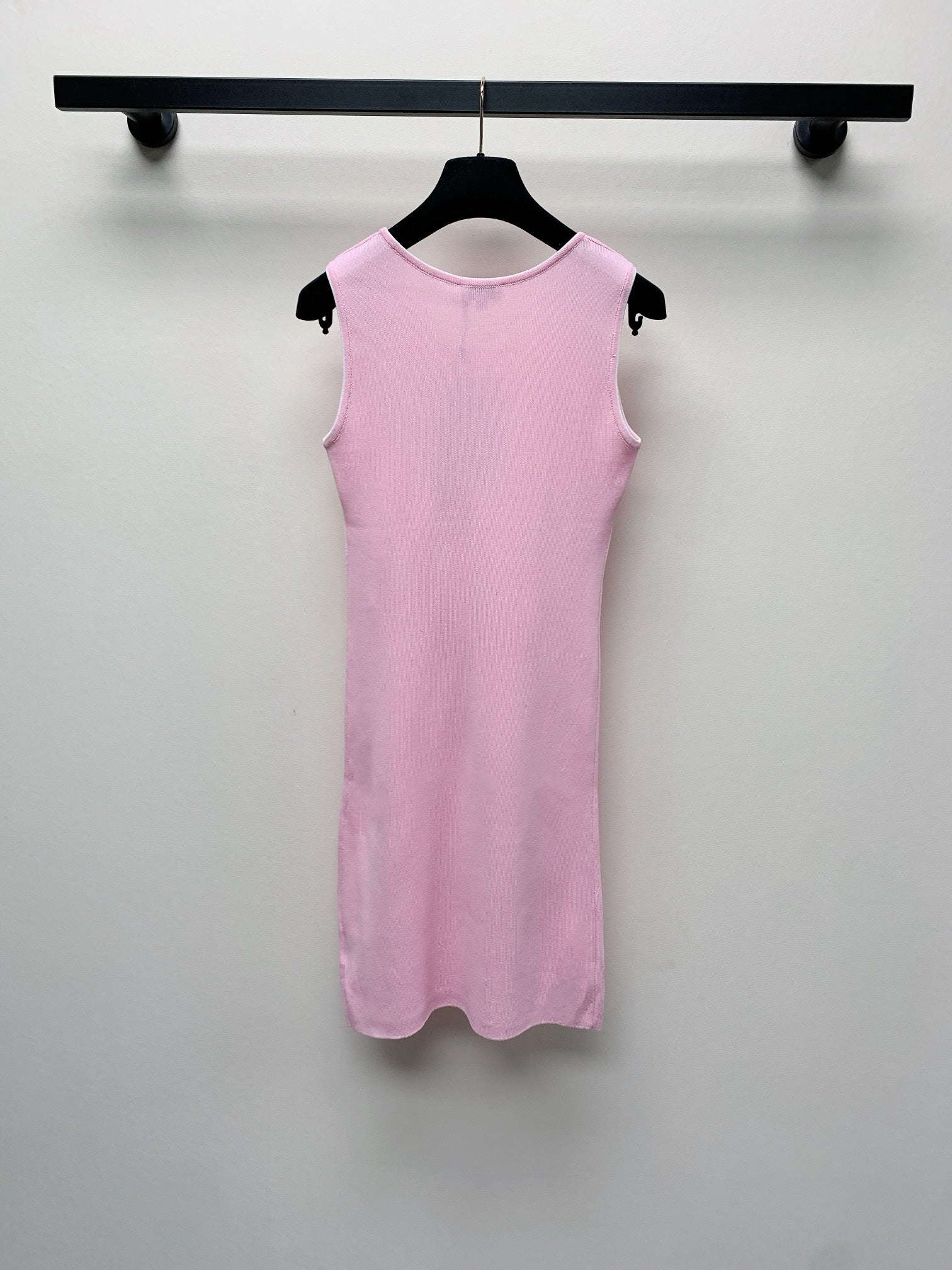 CC 25 Round Neck Knitted Embroidered Logo Vest Dress in Pink 277583
