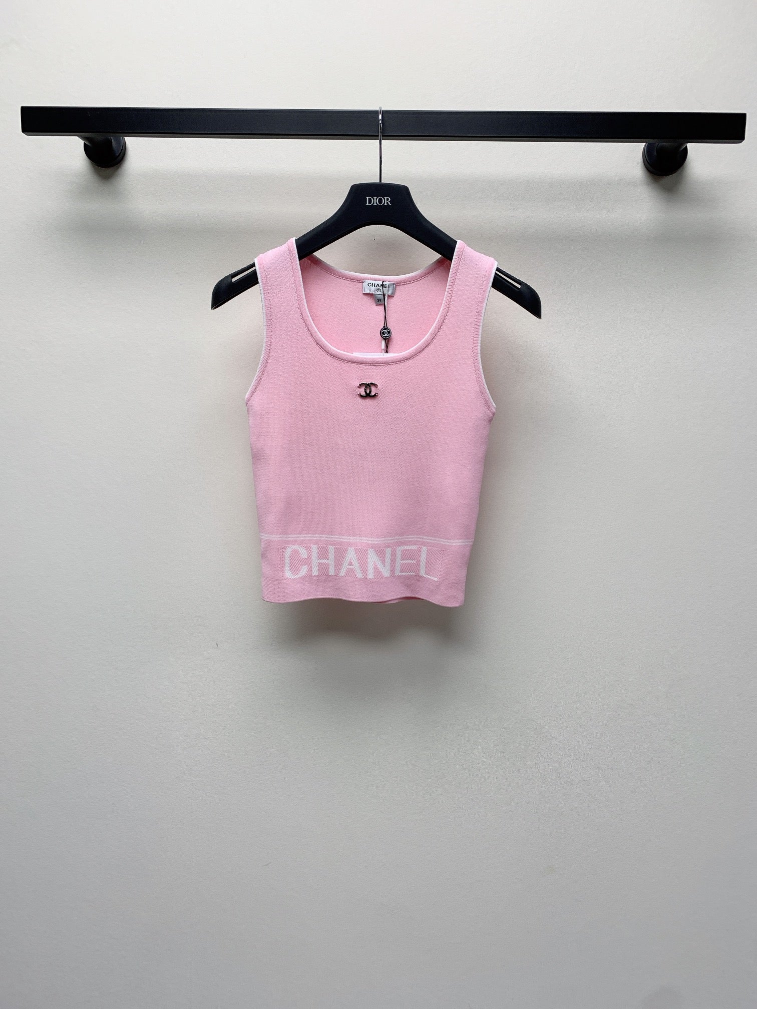CC 25 Round Neck Knitted Embroidered Logo Vest in Pink 277576