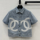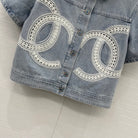 CC 25 Round Neck Short-sleeved Jacket Light Blue Denim Cotton