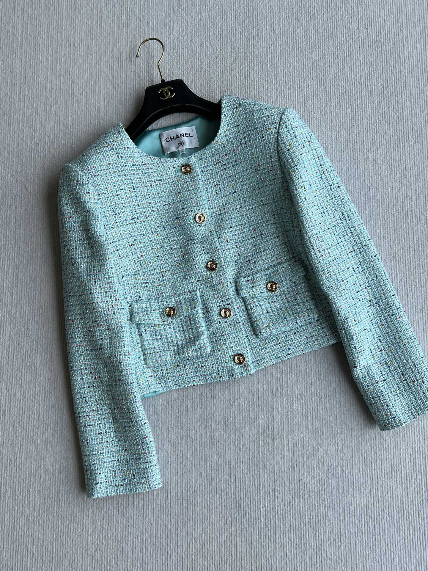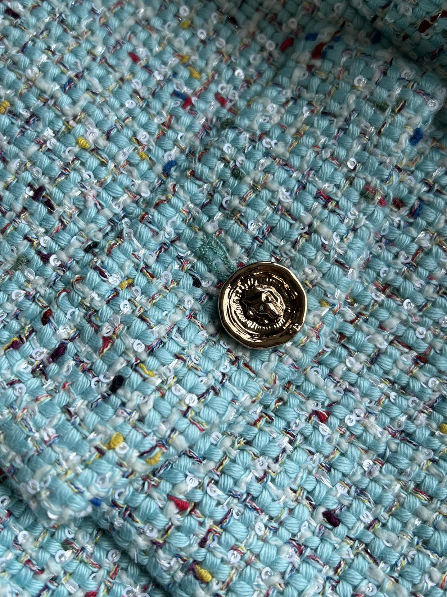 CC 25 Round-neck Slub Coat In Blue-Green Tweed 275793