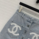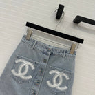 CC 25 Single-breasted Short Skirt Light Blue Denim Cotton