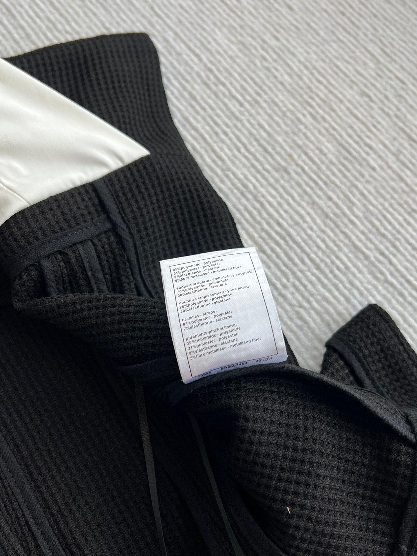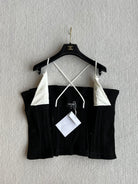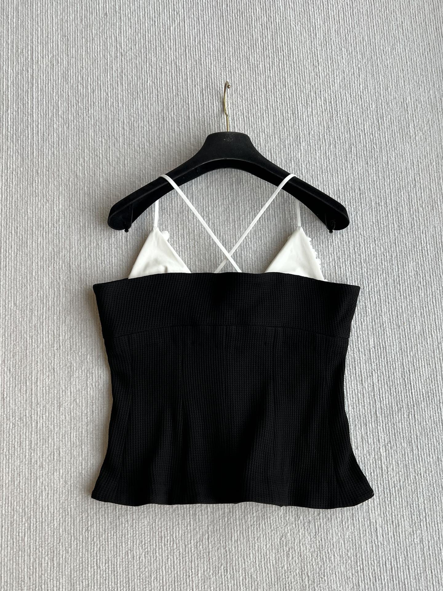 CC 25 Splicing Tube Top Camisole Black and White Mixed Fiber Waffle Jacquard Fabric 275554