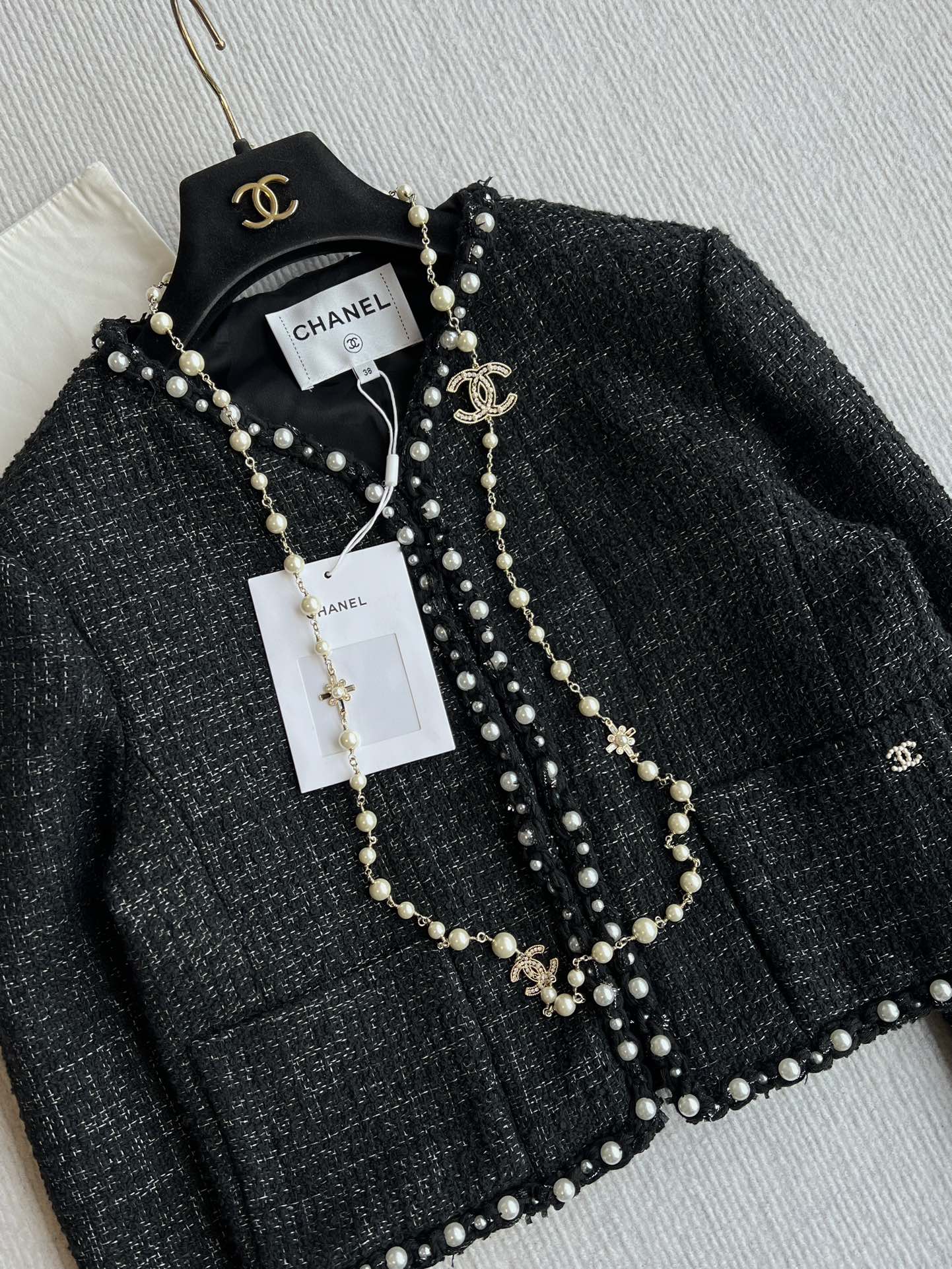 CC 25 Tweed Short Jacket Black Viscose Cotton 235912