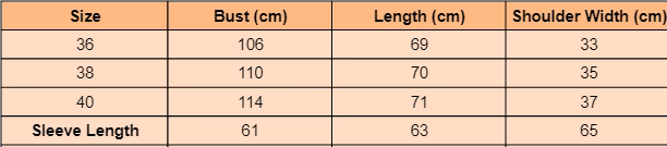 - For more information, please see the size guide below