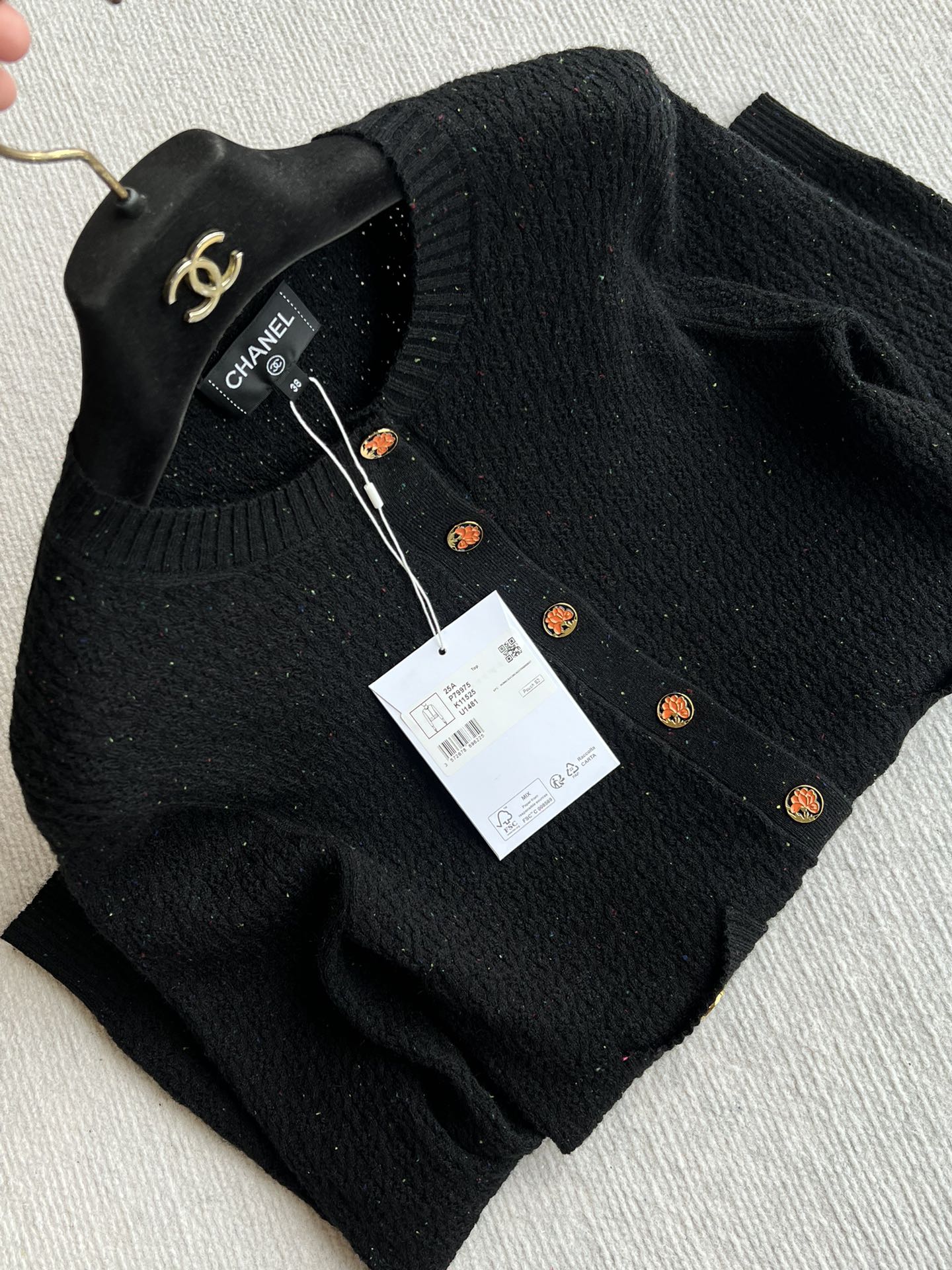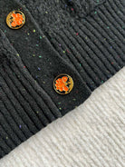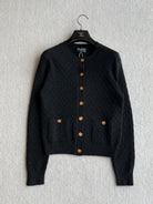 CC 25A Classic Round Neck Floral Wool Cardigan In Black 275516
