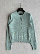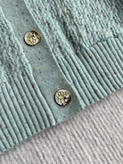CC 25A Classic Round Neck Floral Wool Cardigan In Turquoise 275514