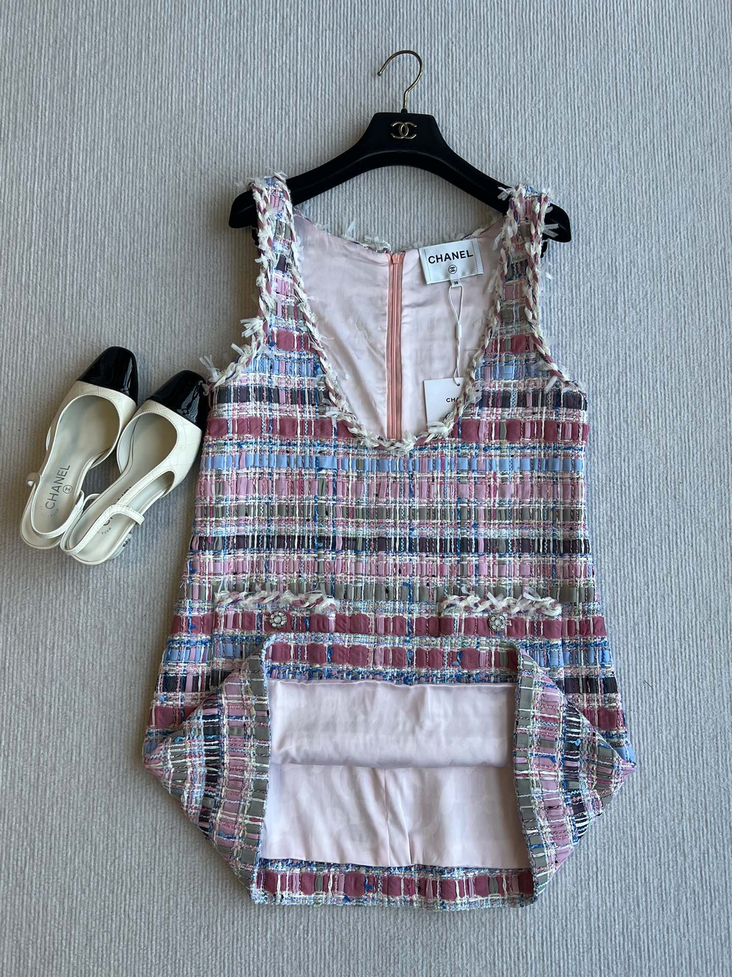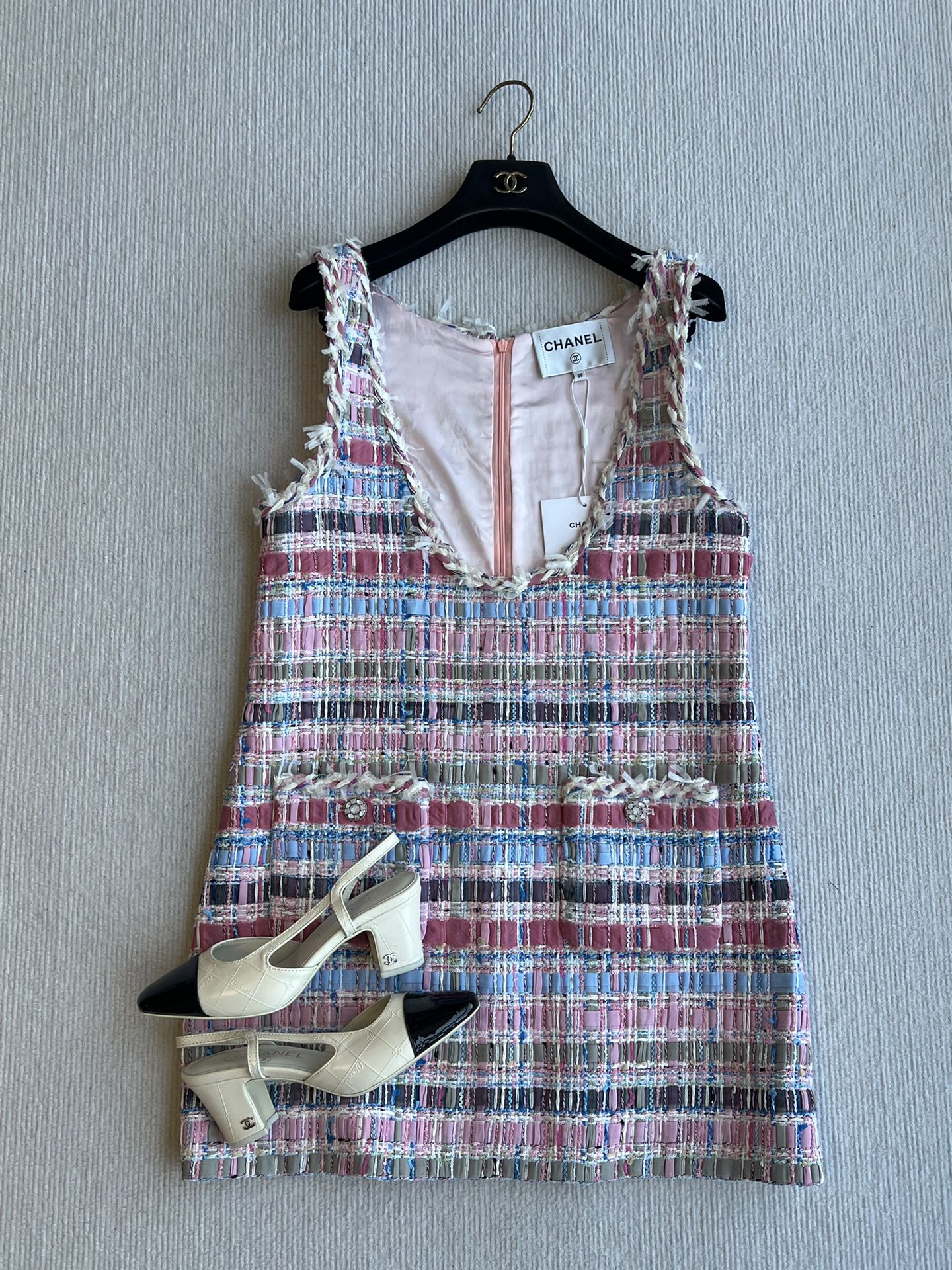 CC 25SS V-neck Vest Dress with Hand-Woven Tassel Ribbons Colorful 277225