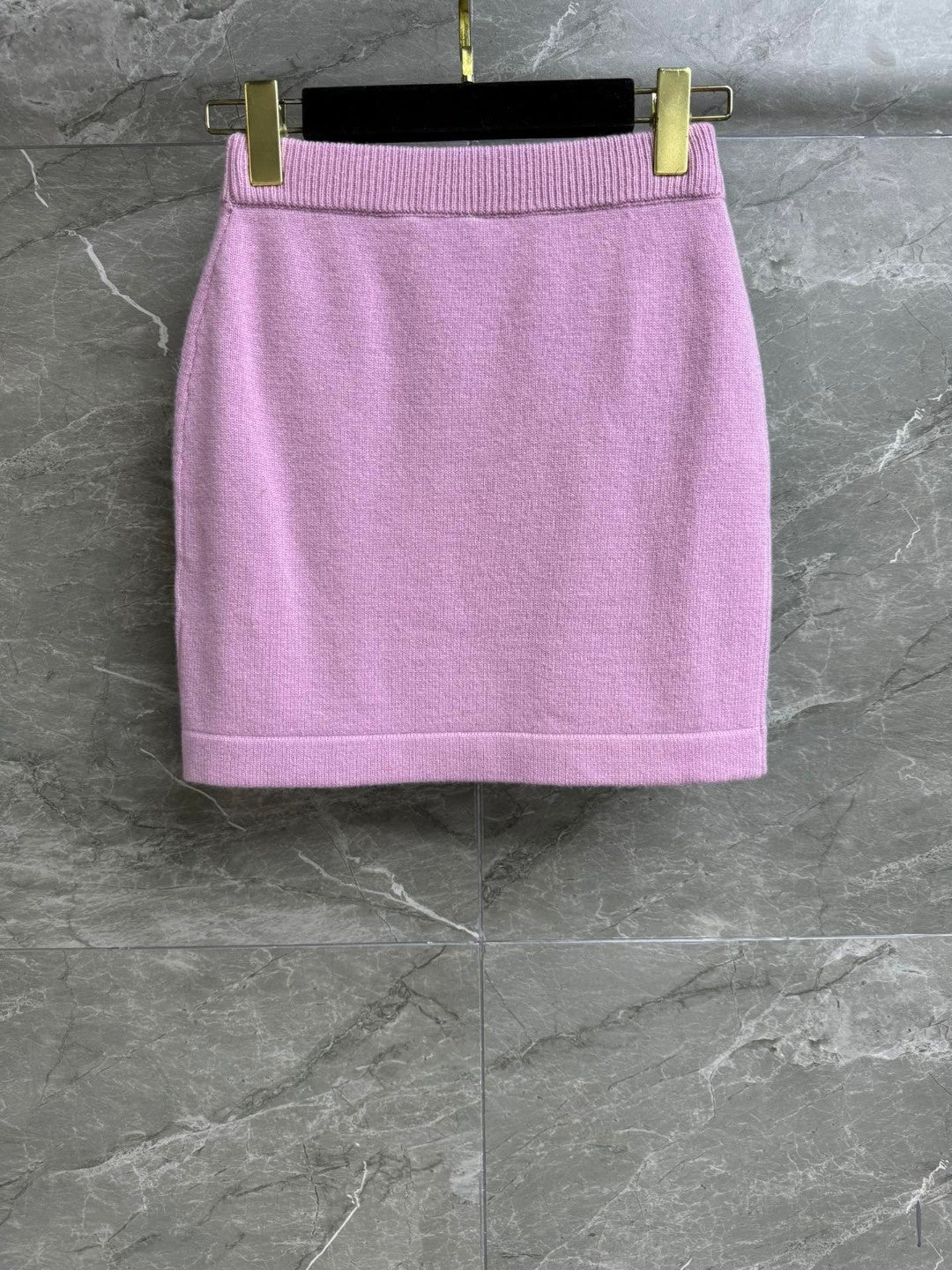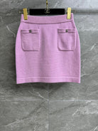 CC ICONIC SKIRT IN PINK WOOL KNIT WITH FRONT POCKETS