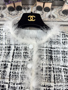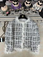 CC Tweed Fur Coat Black White Cotton Polyamide 251826