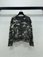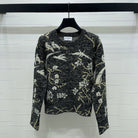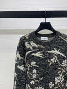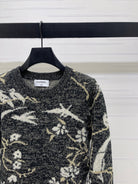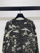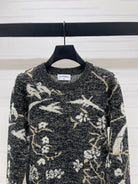 Chanel 25 Floral And Bird Long-sleeved Sweater Gray Wool 321306