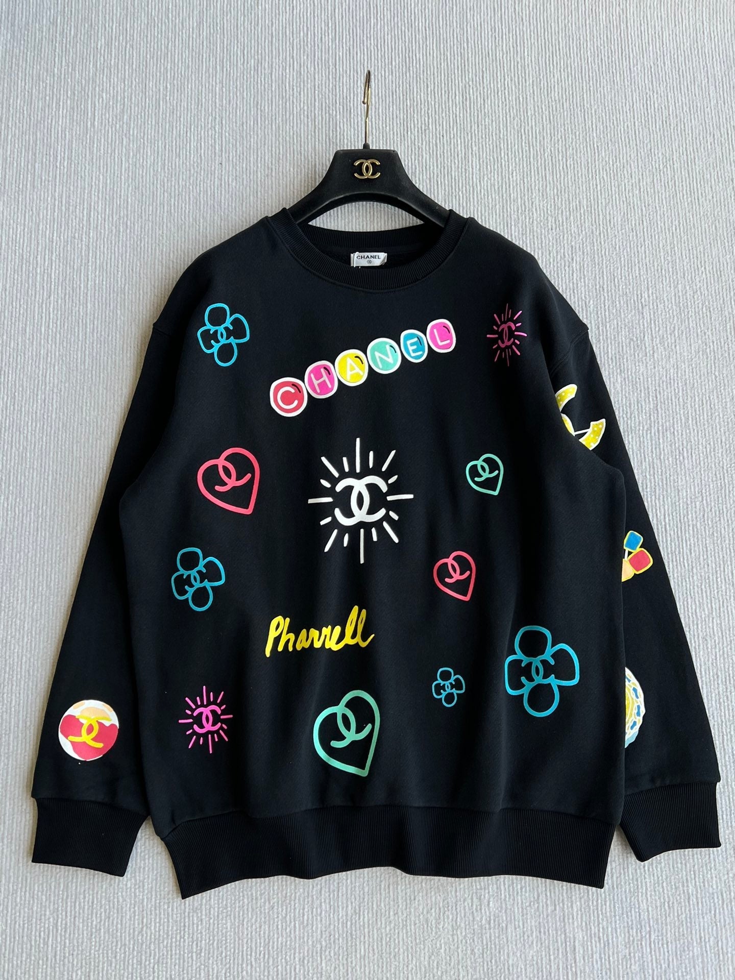 Chanel 25 Graffiti Crew Neck Sweatshirt Black Cotton 312091