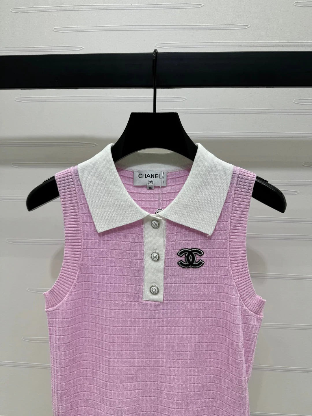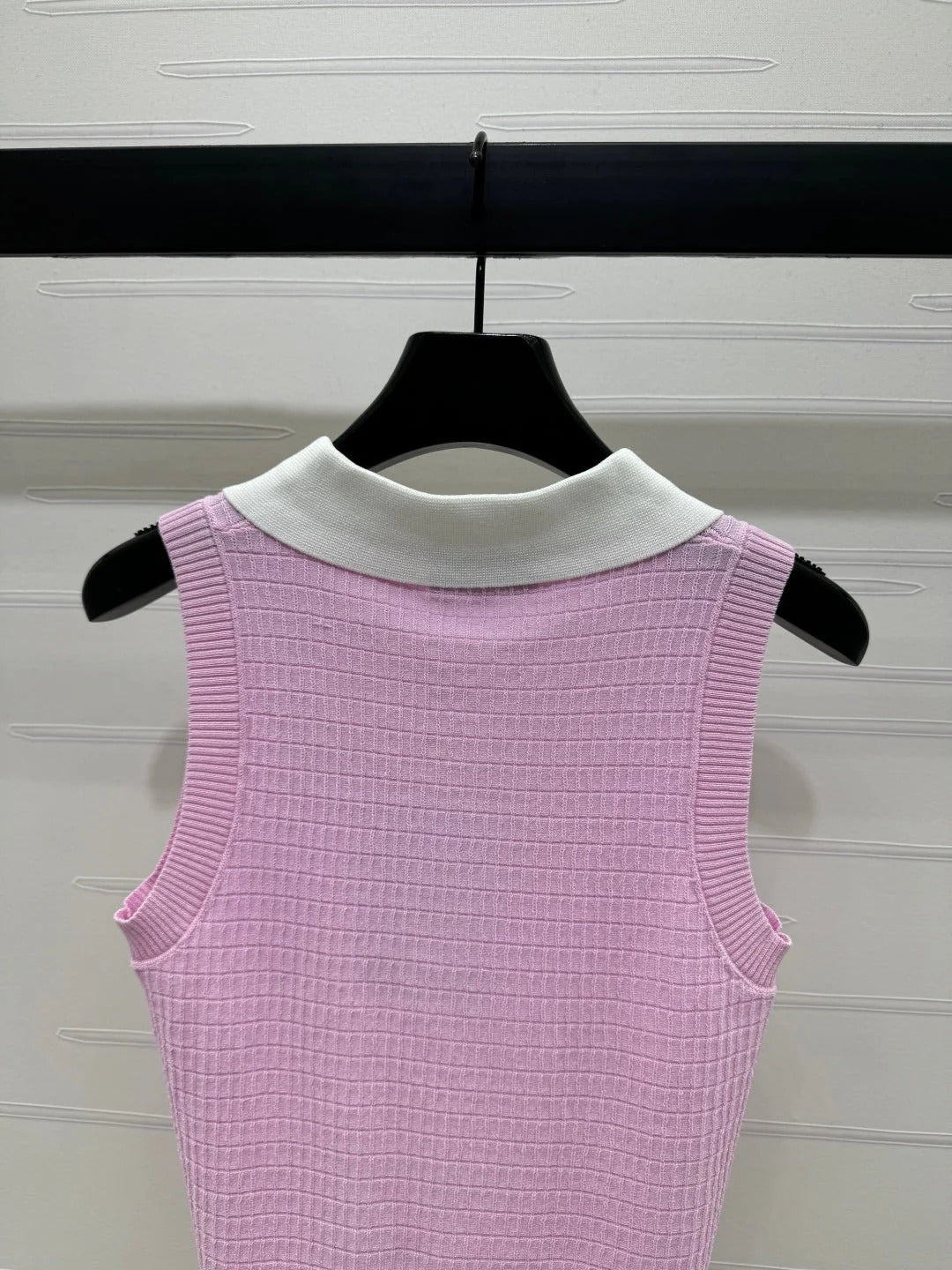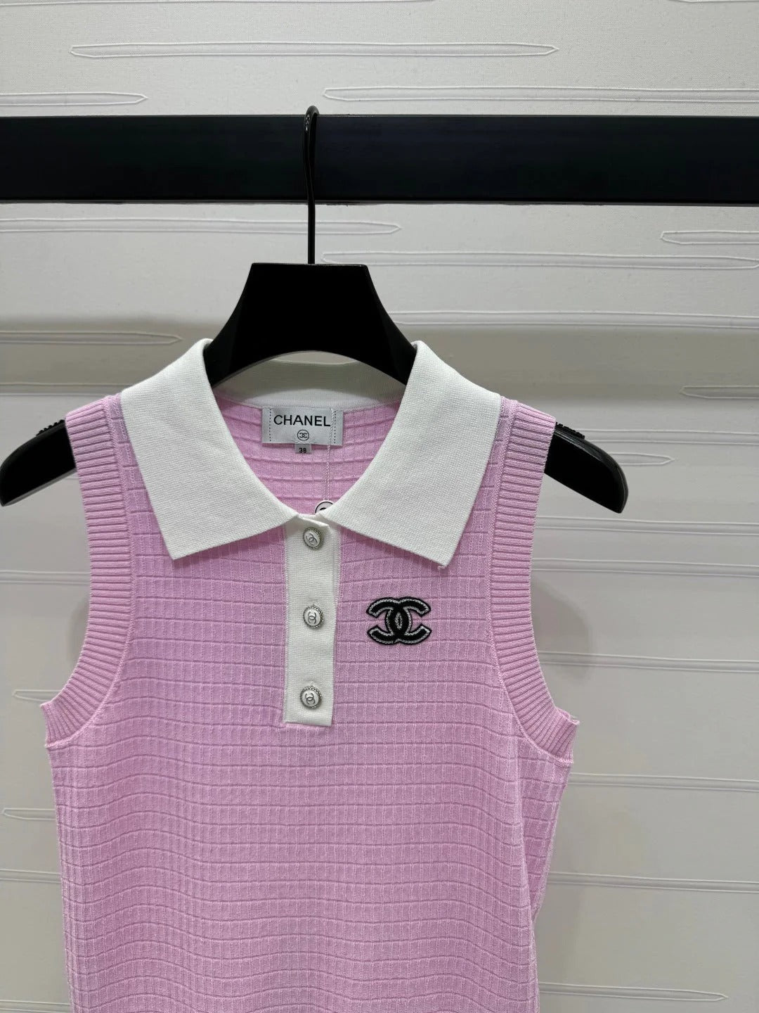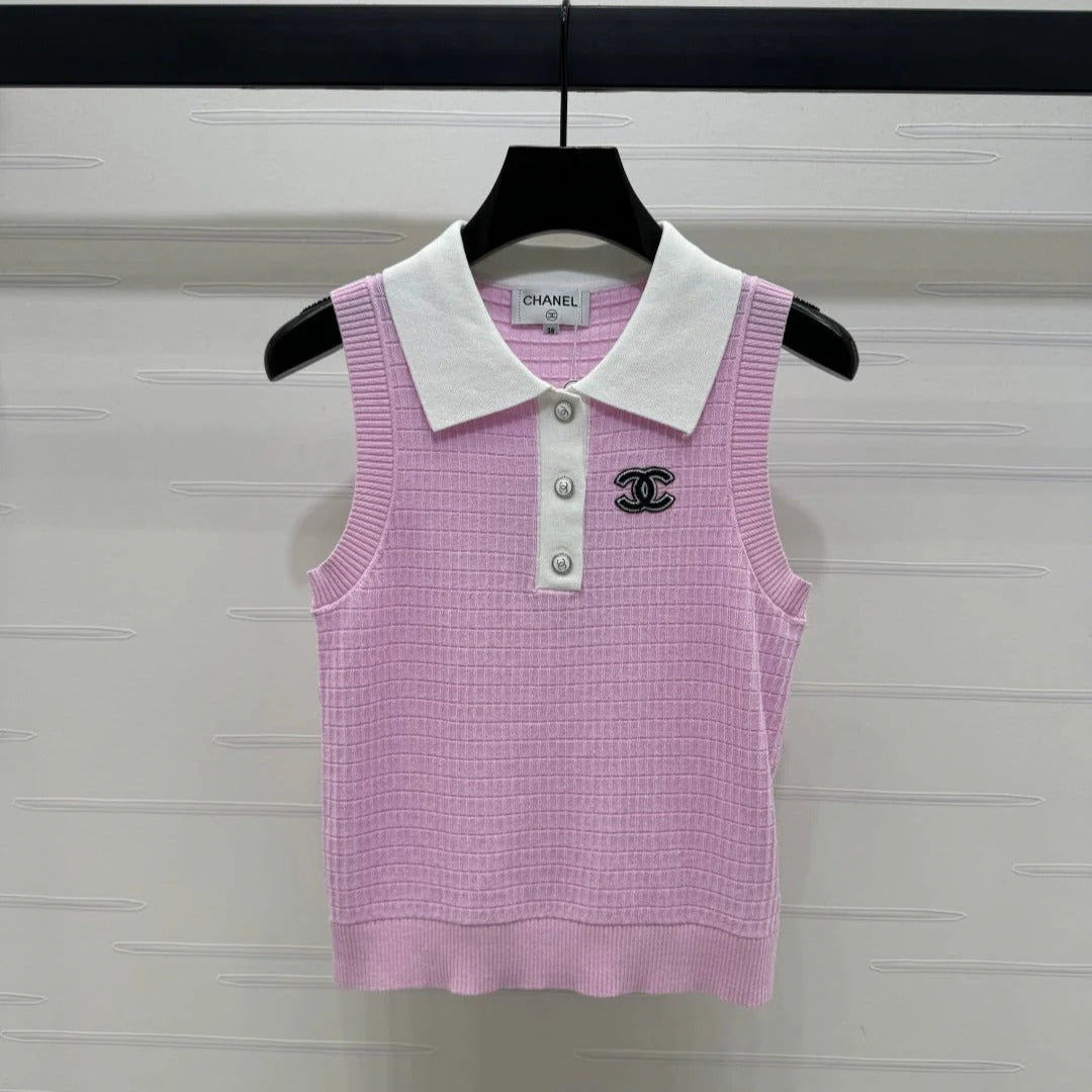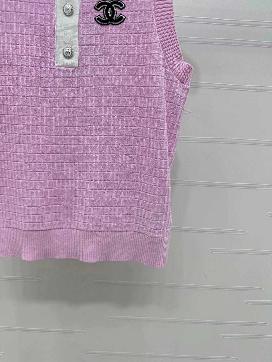 CHANEL 25S DOUBLE C LOGO KNIT COLLAR VEST 264071