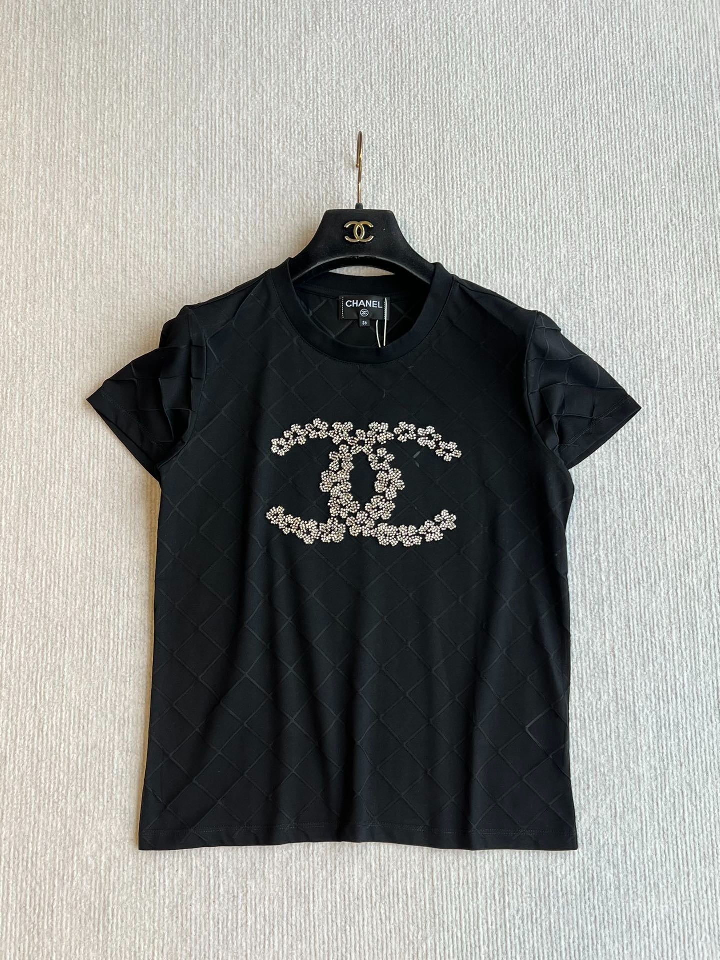 CHANEL BLACK SHORT-SLEEVE EMBELLISHED T-SHIRT