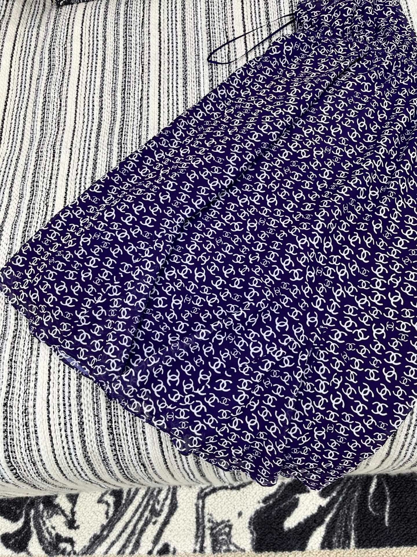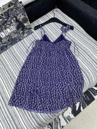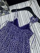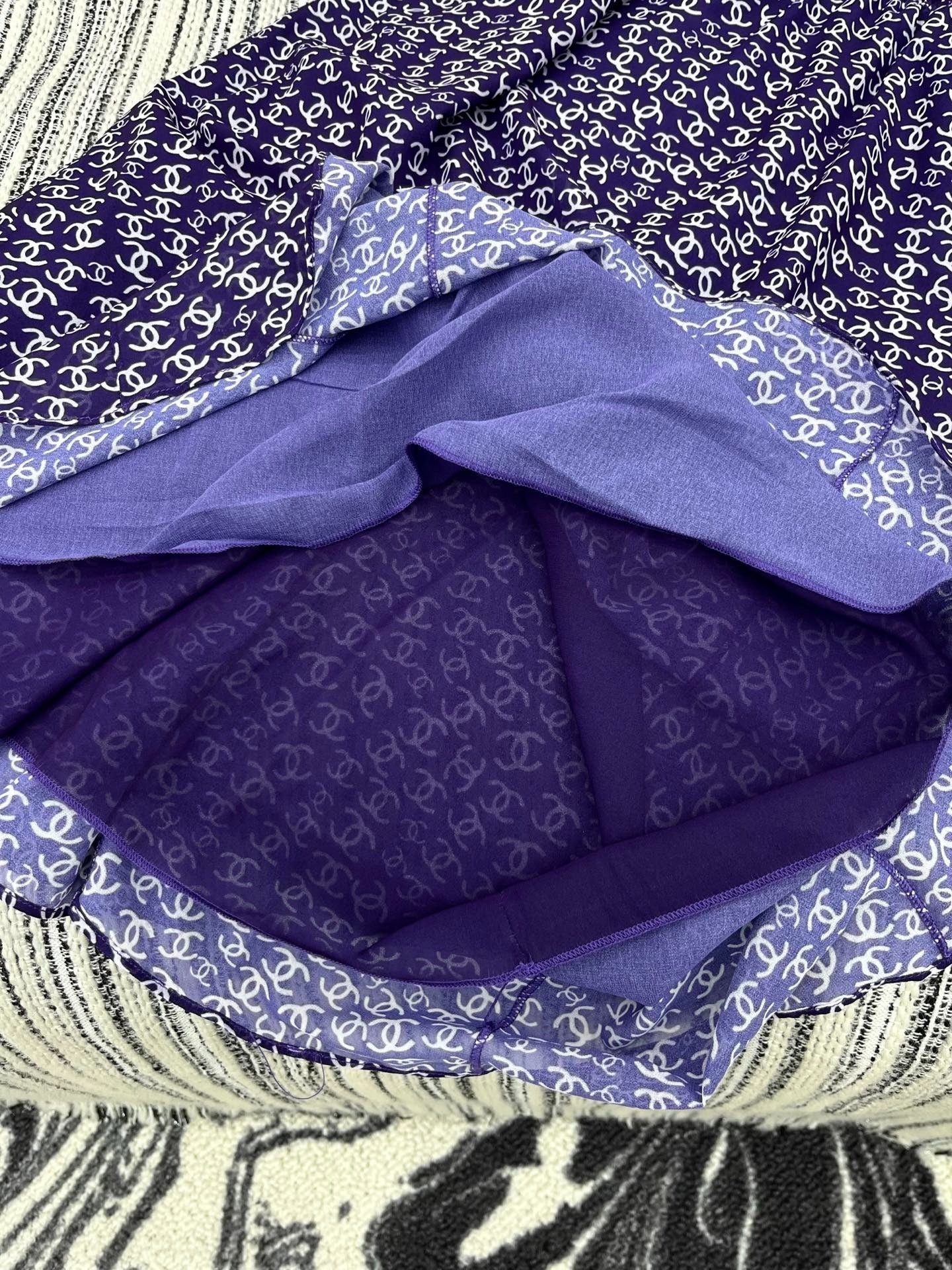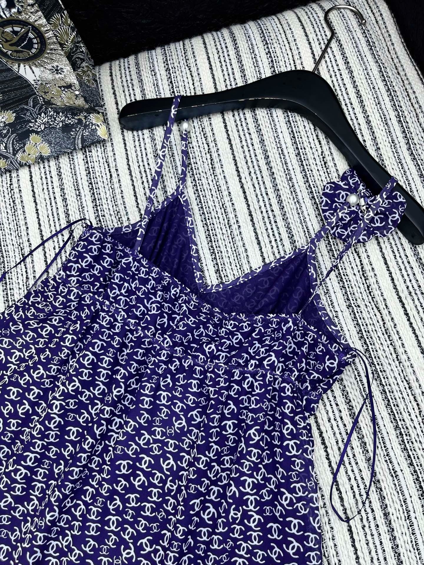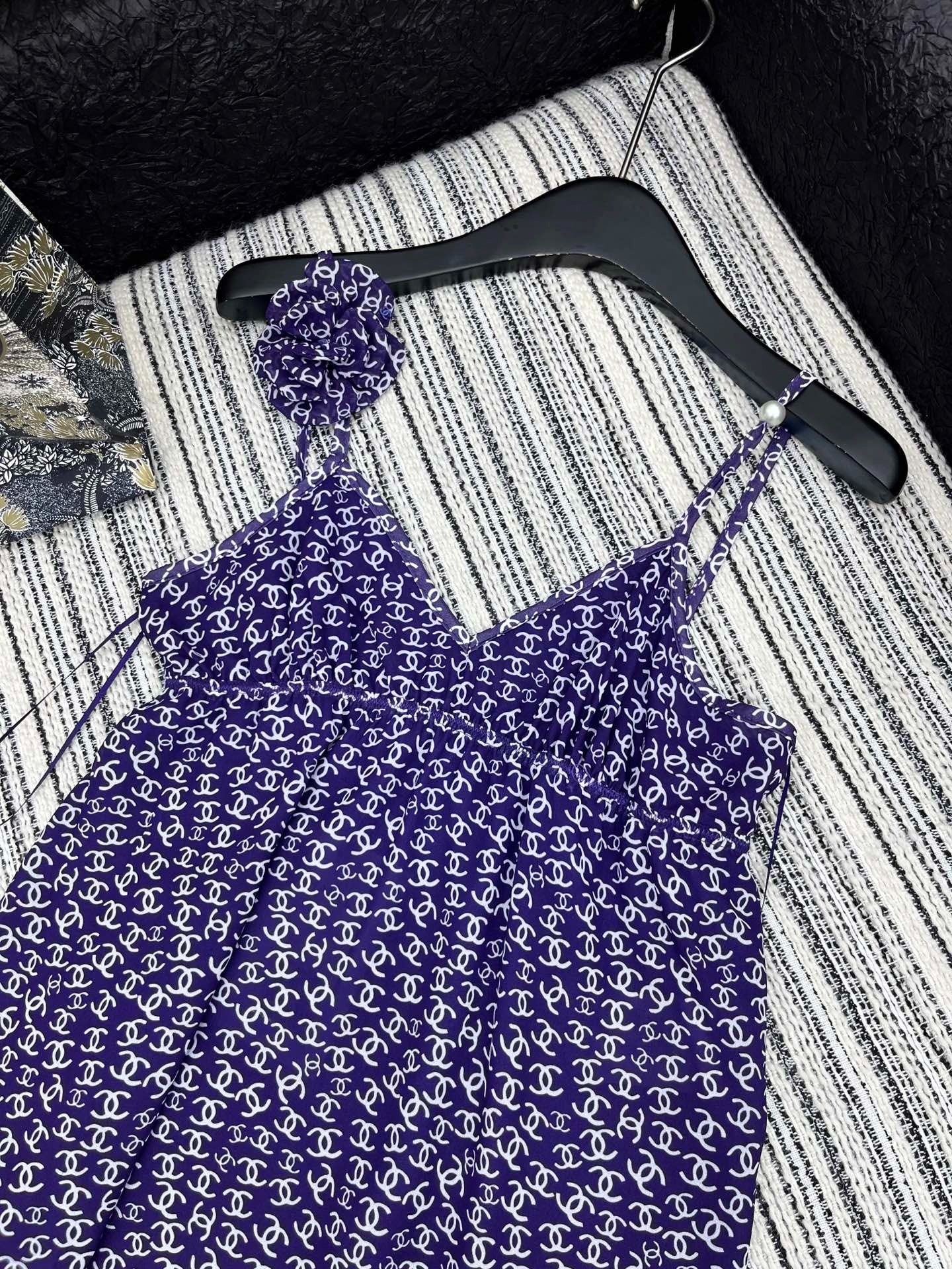 CHANEL DARK PURPLE SILK CAMELLIA DRESS WITH PEARL DETAILS