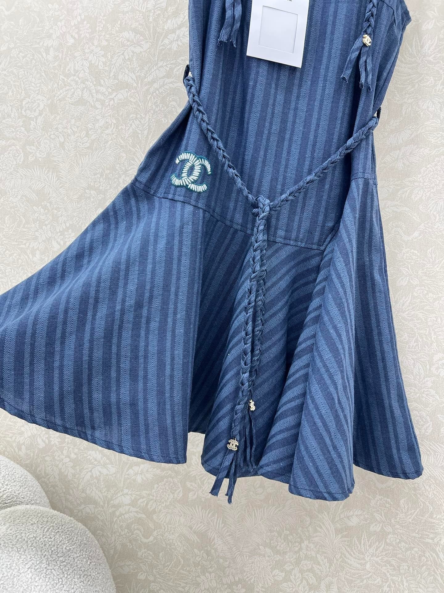 CHANEL DENIM HALTER DRESS WITH TRIM DETAILS 275134
