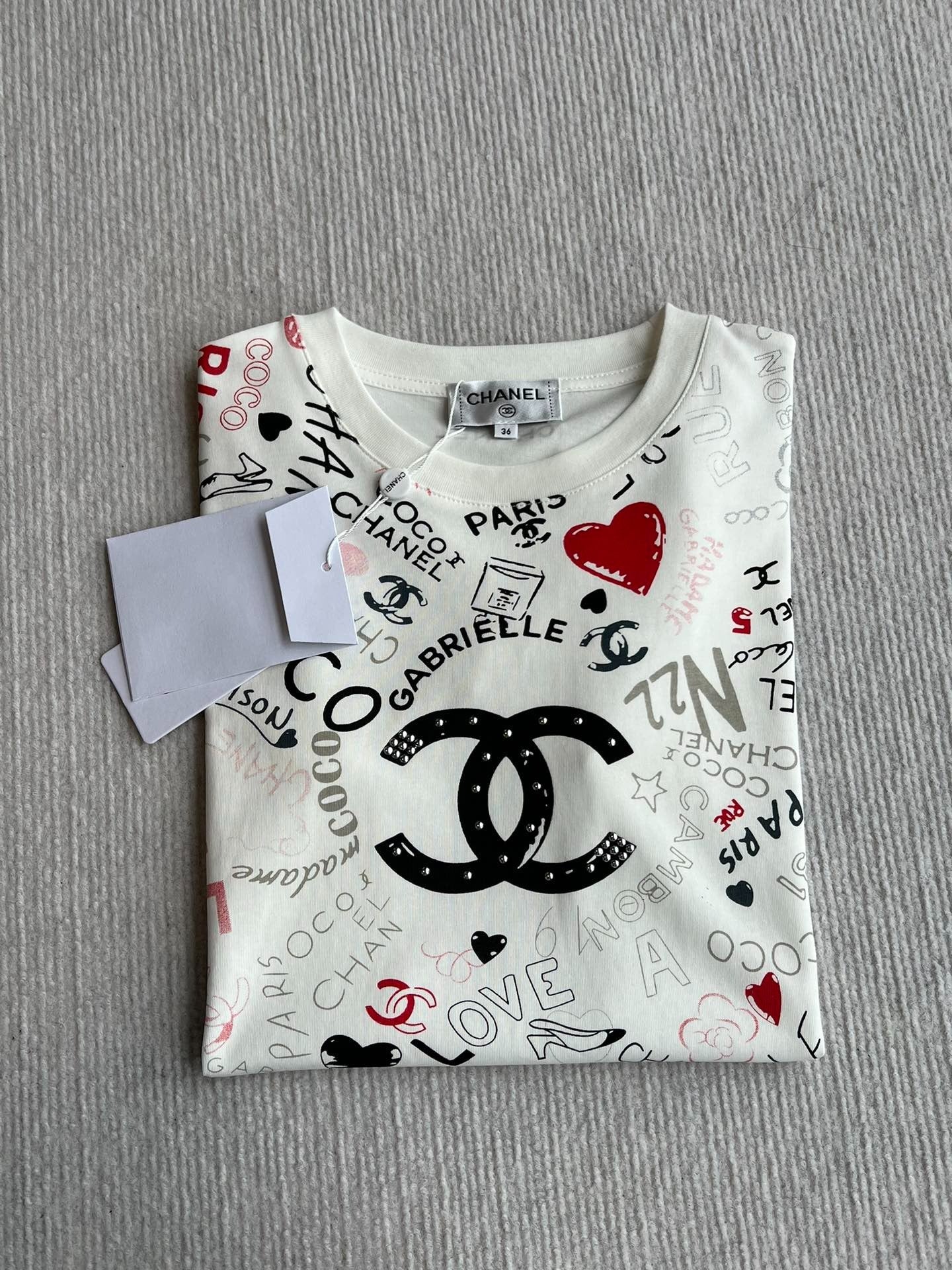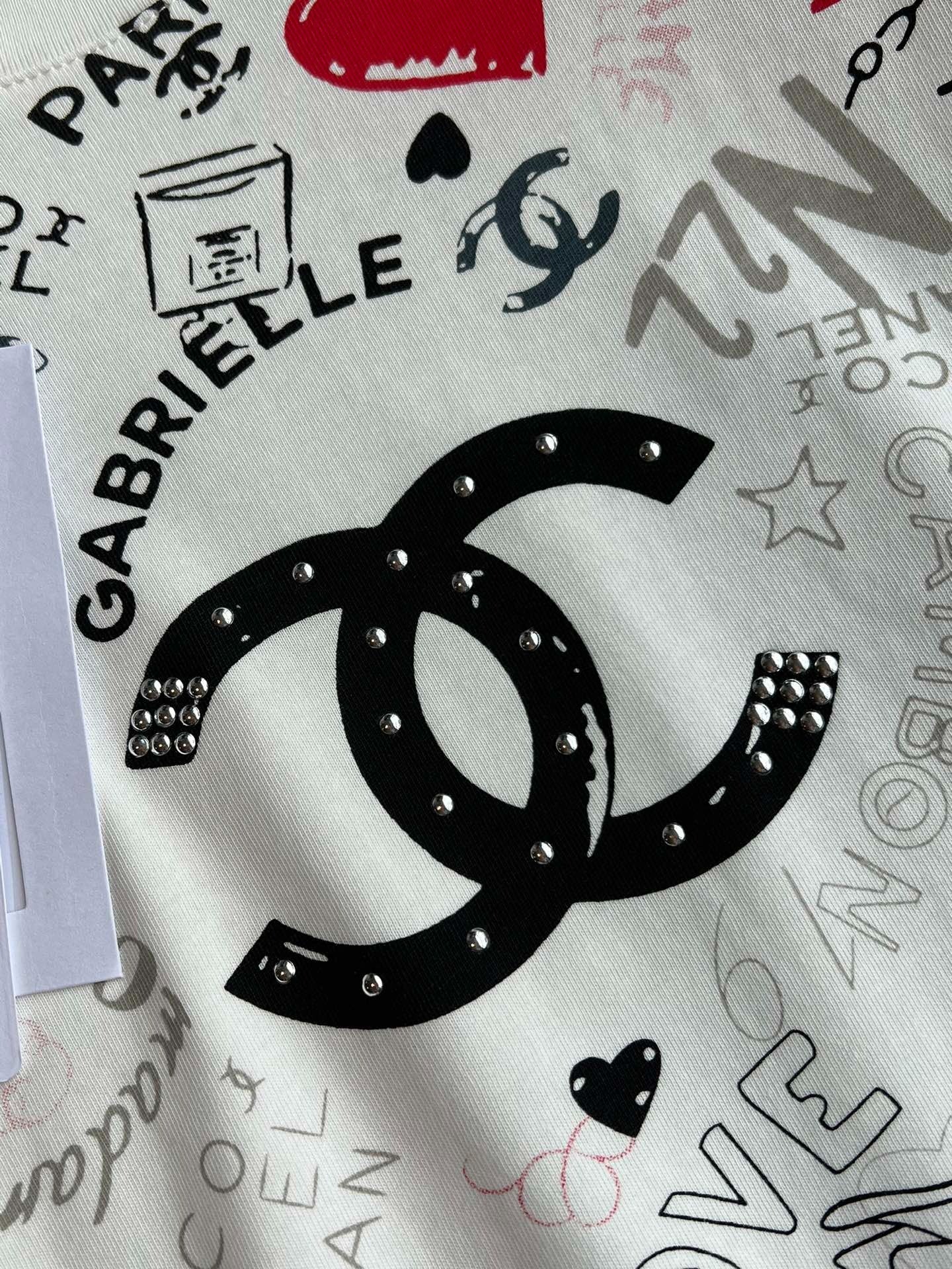 CHANEL OFF-WHITE LOGO PRINT T-SHIRT