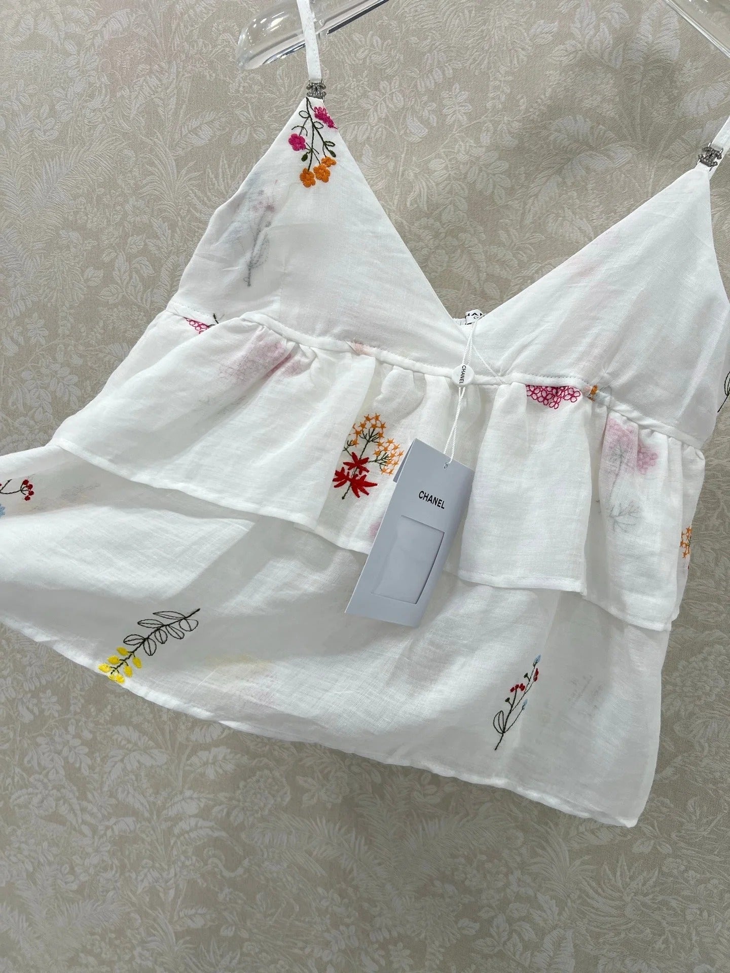 CHANEL RUFFLED SPAGHETTI STRAP TOP 272286