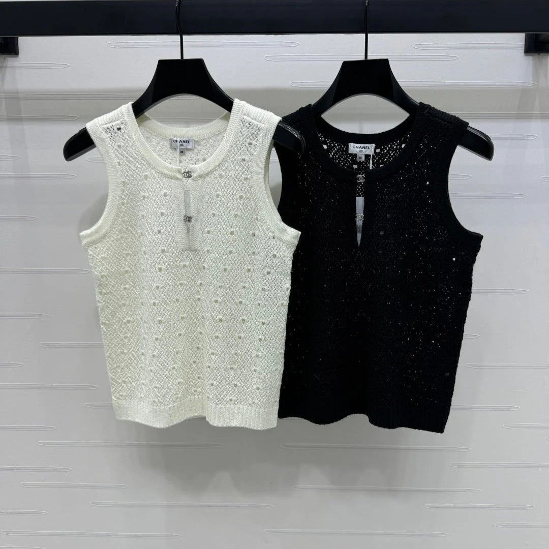 CHANEL SLEEVELESS OPEN-KNIT VEST 274858