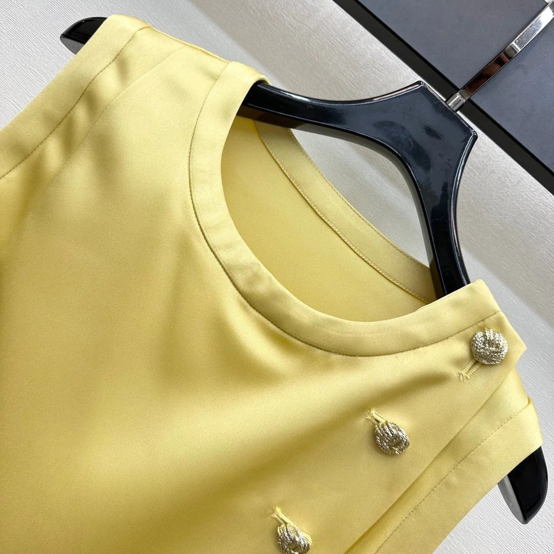 CHANEL SLEEVELESS ROUND-NECK BUTTON-UP TOP 274771