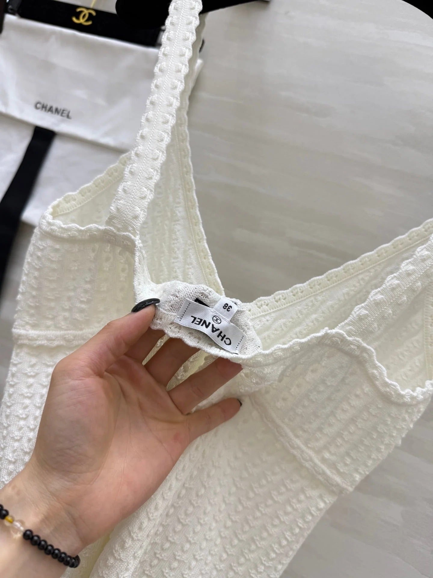 CHANEL WHITE SPAGHETTI STRAP TOP 265024